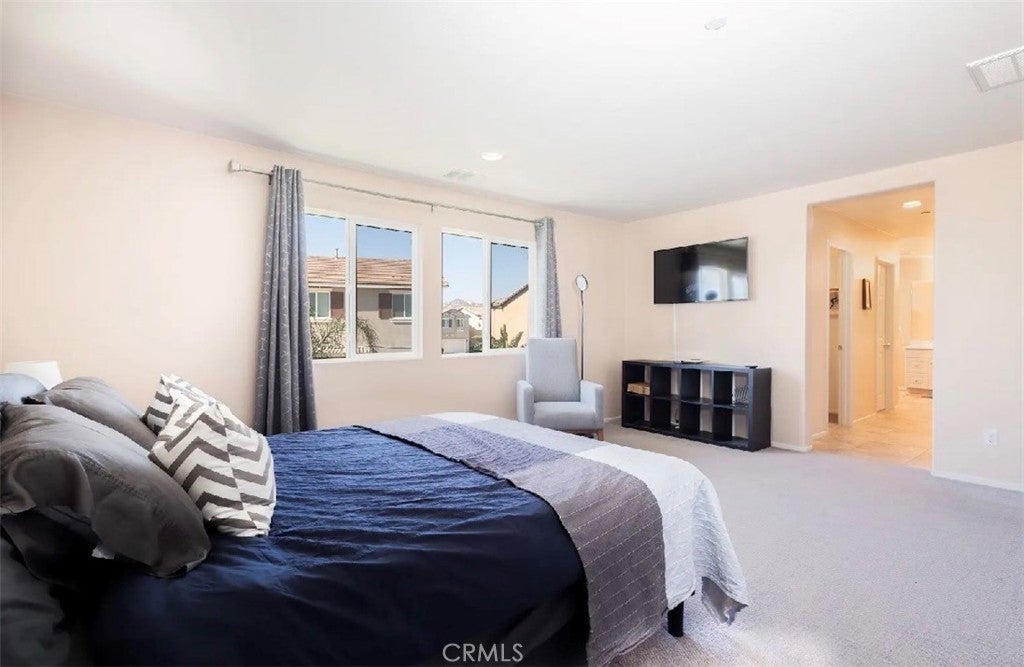 Modern built in 2017, 4 bed, 3 full bathroom home 2401 qf ft. open floor plan, high ceilings, gourmet kitchen island, and solar panels for low energy costs. Successfully run as a rental, perfect for investors or families wanting extra income potential. Turnkey and ready for the next owner. This home will come fully furnished and includes: solar with back up battery, whole house water filtration system. Newly build backyard patio with LEDs and fans build in. The landscape is a "dryscape" for low maintenance and 3 fruit trees. (Orange, lemon and grapefruit) Enjoy southern California living with nearby hiking, fishing & splash pads at Rancho Jurupa regional Park, sports fields and family friendly parks. Quiet Cul-de-sac location with quick freeway access.
