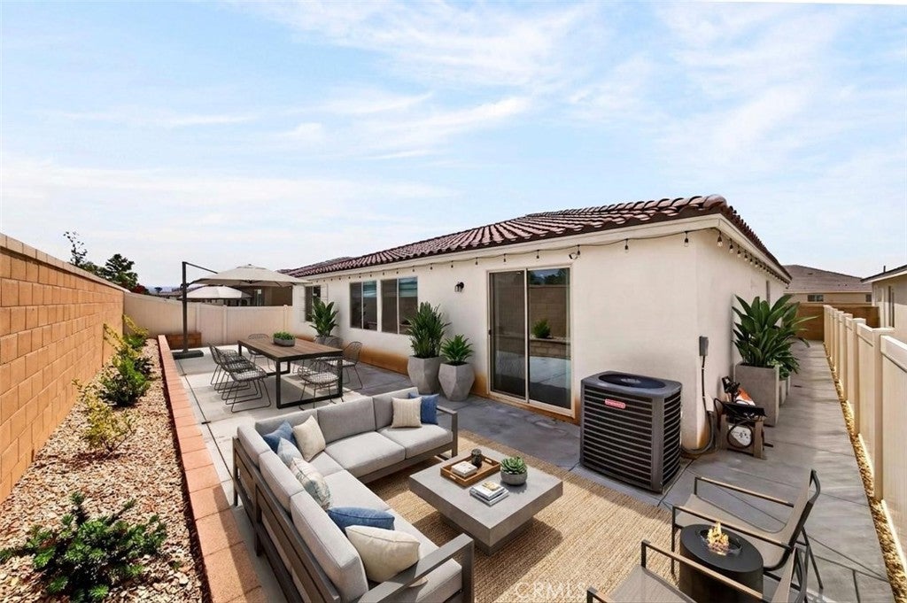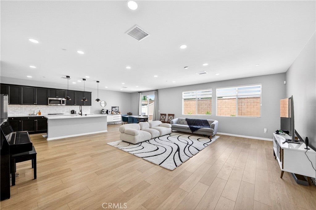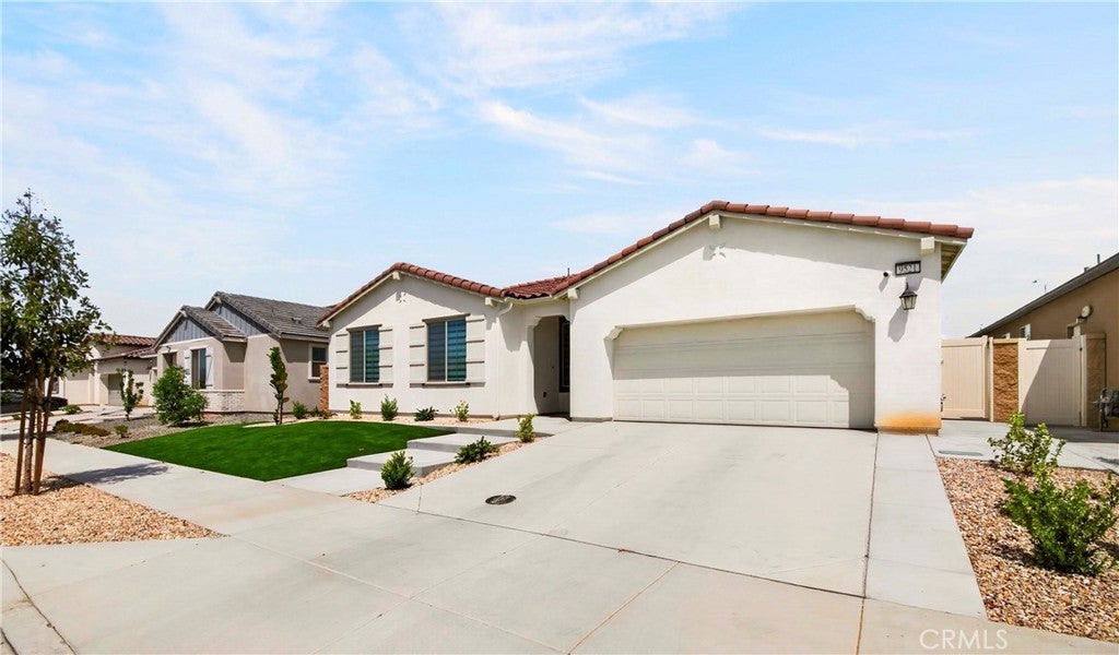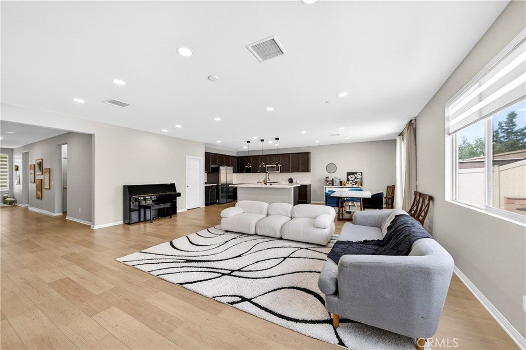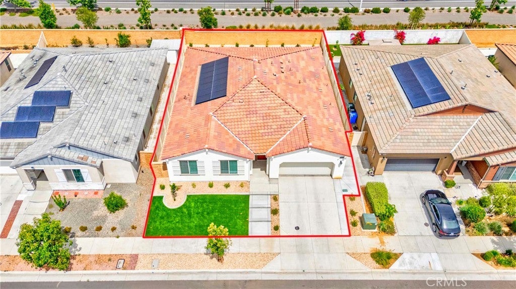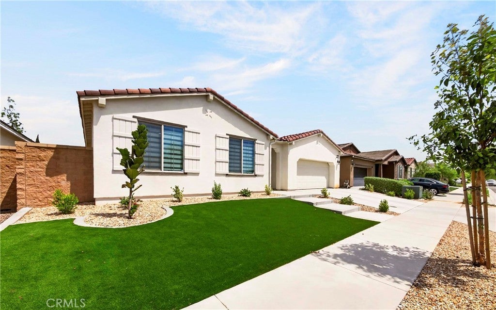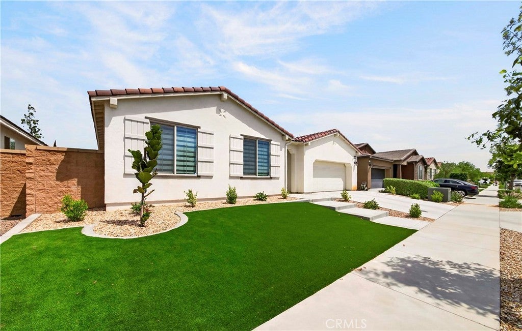 Welcome to this exceptional single-family home in Jurupa Valley! This beautifully maintained single-story home offers 3 bedrooms, a versatile office area, and 2.5 bathrooms, providing flexible living space to suit your needs. The home features a spacious living room with stylish laminate flooring, creating a warm and inviting atmosphere. Laminate flooring extends throughout the living room, kitchen, and hallway, complemented by tile flooring in the bathrooms and the laundry room. The bright and open kitchen is thoughtfully designed with quartz countertops, a modern backsplash, stainless steel appliances, a huge center island, and a walk-in pantry—perfect for both everyday living and entertaining. Enjoy low-maintenance outdoor living with artificial turf in the front yard and extensive backyard cement work completed in 2025—ideal for gatherings and relaxation. This home is equipped with 14 leased solar panels at $161/month through SunPower. Additional features include custom blinds and upgraded recessed lighting throughout the home. Don’t miss this great opportunity in Jurupa Valley!