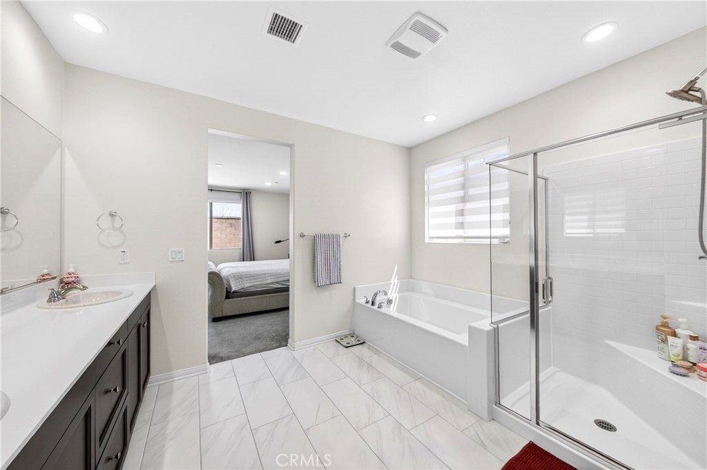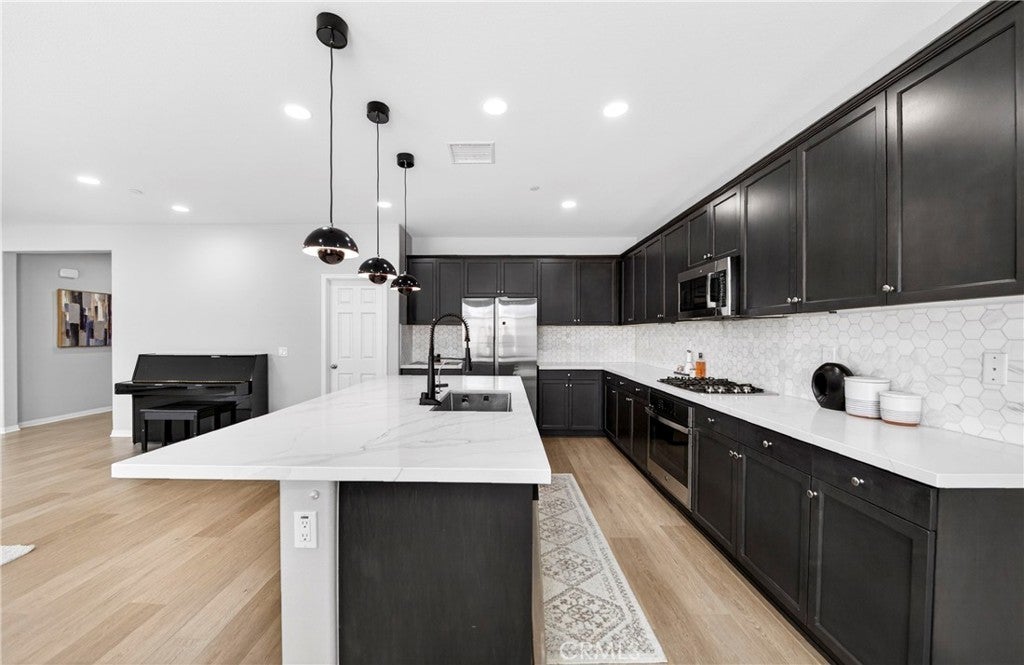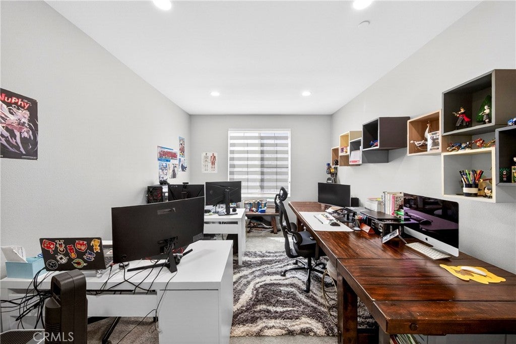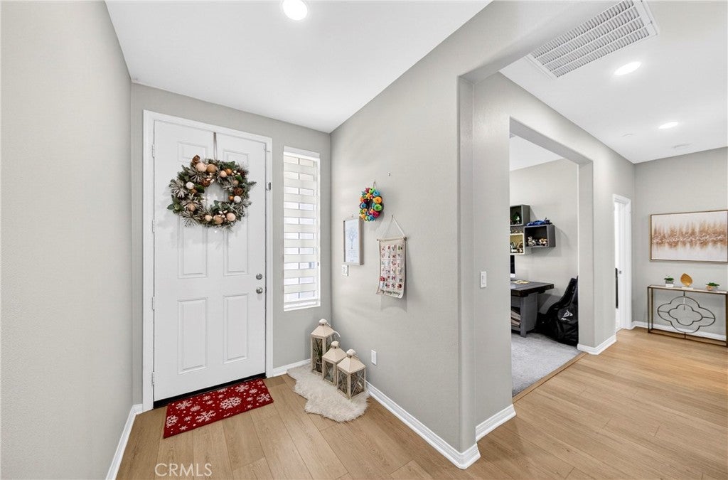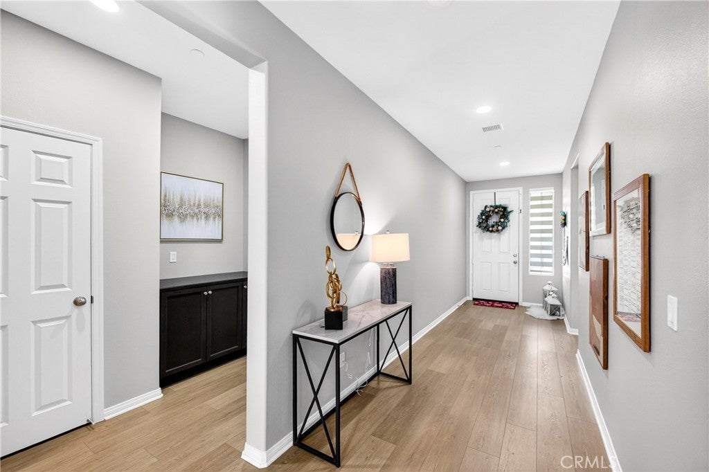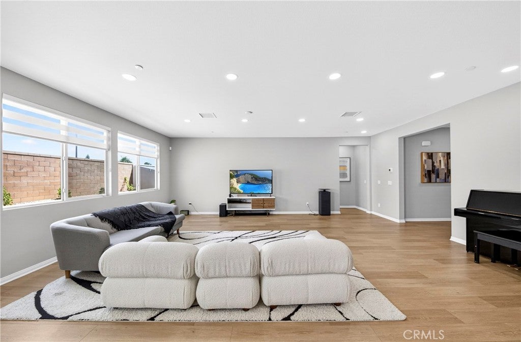 Welcome to this exceptional single-family home in Jurupa Valley! This beautifully maintained single-story home offers 3 bedrooms, a versatile office area, and 2.5 bathrooms, providing flexible living space to suit your needs. The home features a spacious living room with stylish laminate flooring, creating a warm and inviting atmosphere. Laminate flooring extends throughout the living room, kitchen, and hallway, complemented by tile flooring in the bathrooms and the laundry room. The bright and open kitchen is thoughtfully designed with quartz countertops, a modern backsplash, stainless steel appliances, a huge center island, and a walk-in pantry—perfect for both everyday living and entertaining. Enjoy low-maintenance outdoor living with artificial turf in the front yard and extensive backyard cement work completed in 2025—ideal for gatherings and relaxation. This home is equipped with 14 leased solar panels at $161/month through SunPower. Additional features include custom blinds and upgraded recessed lighting throughout the home. Don’t miss this great opportunity in Jurupa Valley!