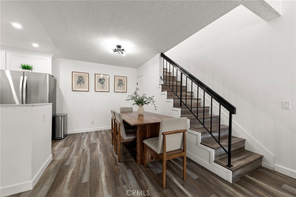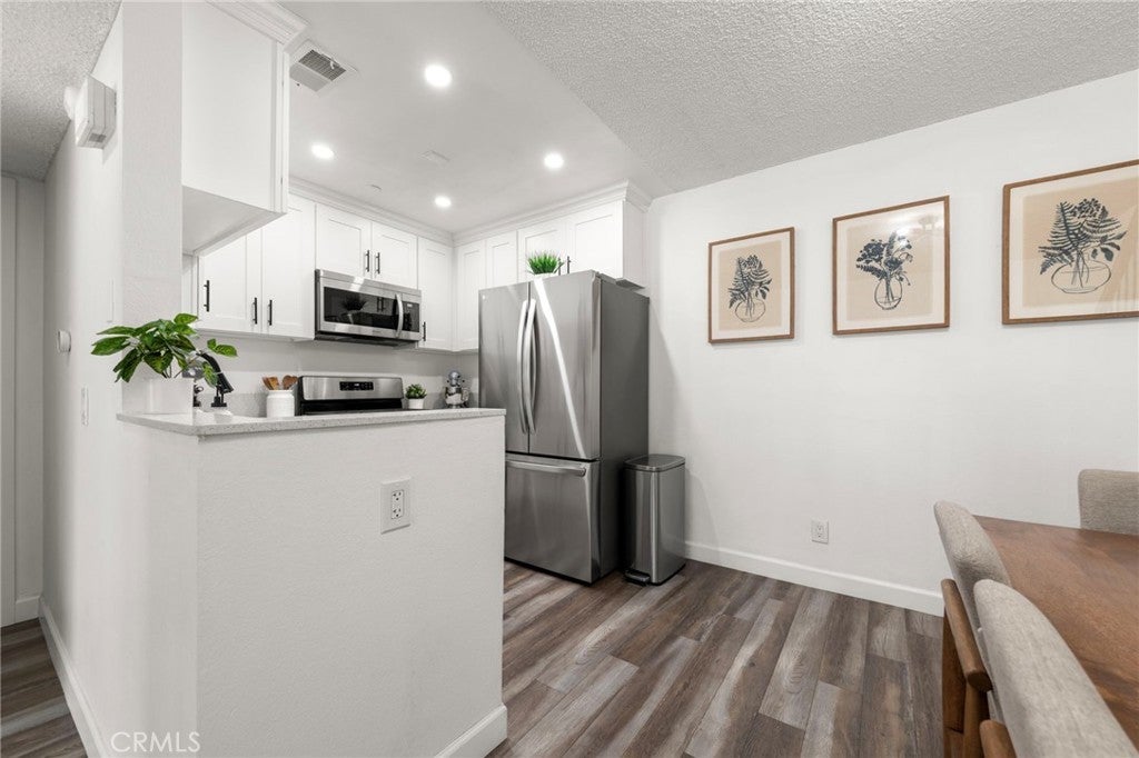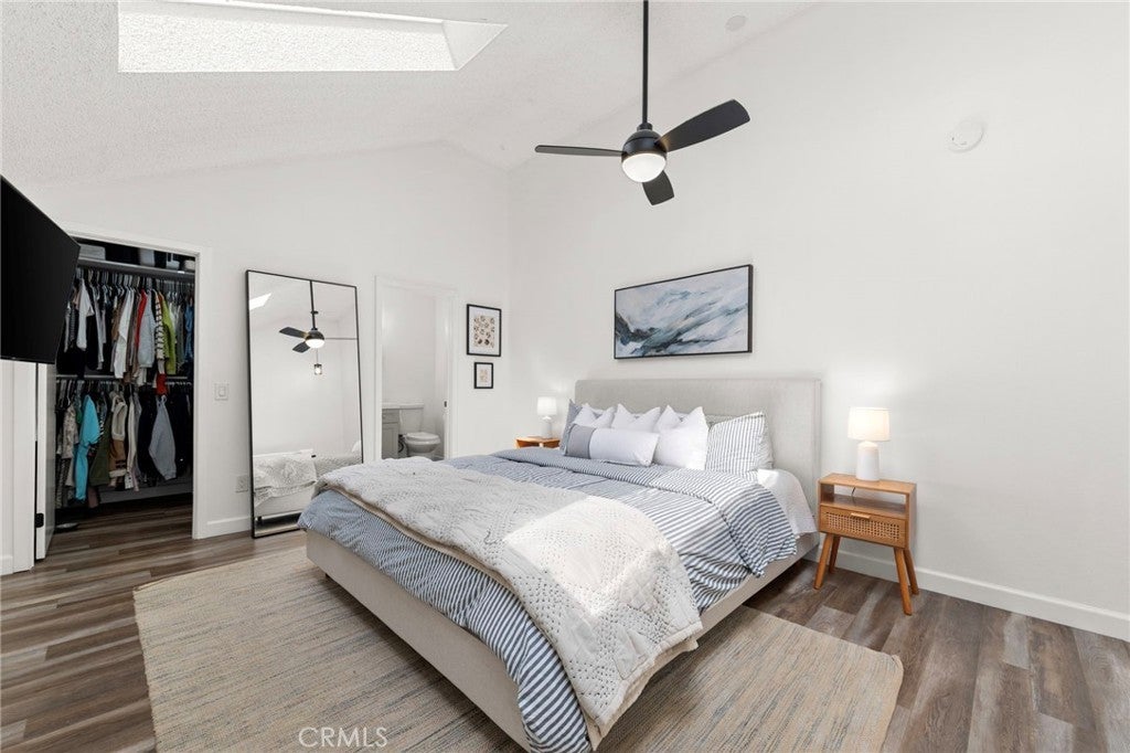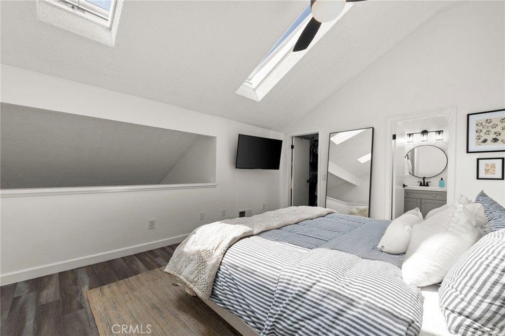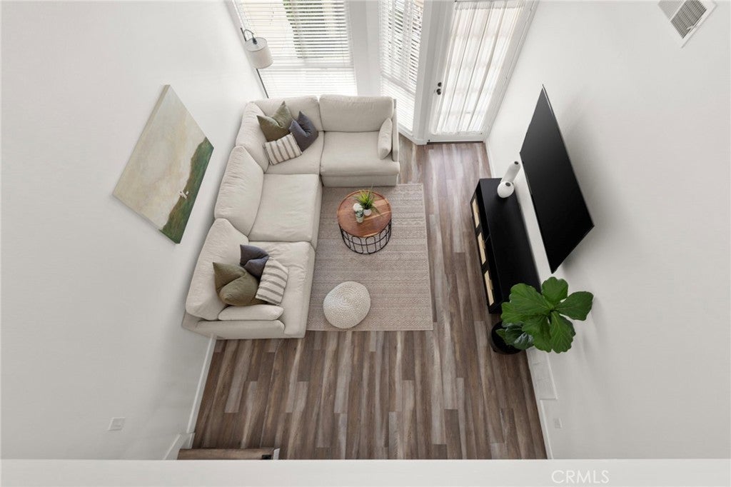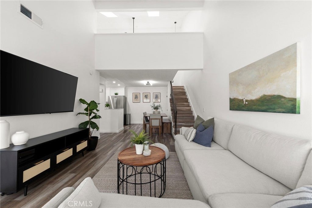 A beautifully reimagined condo where style, comfort, and natural light come together effortlessly. Featuring a bright open floor plan, this fully updated home showcases modern flooring throughout and a stunning kitchen designed to impress, complete with quartz countertops, and crisp white shaker cabinets. The main level offers a convenient downstairs bedroom along with a tastefully updated guest bathroom featuring matching quartz counters and cabinetry, plus a full tub and shower perfect for guests or multi-generational living. Upstairs, the airy loft-style primary suite is a true retreat, boasting soaring ceilings, abundant natural sunlight, a spacious closet, and a private powder bathroom, enhanced by new skylights that further brighten the space. Enjoy your own private patio ideal for relaxing or entertaining and the added convenience of an assigned parking space with a storage cabinet as well as 2 additional permits and ample guest parking. Additional upgrades include a reverse osmosis water filtration system servicing both the fridge and kitchen sink, central A/C and heating that are only one year old, and a washer and dryer also just one year old. Exceptional Location in the Guard-Gated Community of Crosspointe Village; The community enhances the lifestyle with a sparkling pool and spa, sunbathing areas, and expansive green spaces perfect for outdoor activities.