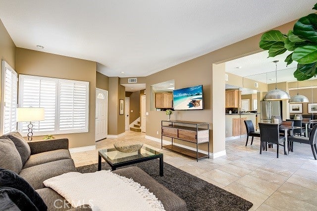 Ideal for temporary or interim residence. Between homes? Relocating? Work Assignment? Model perfect, this Fully Furnished Townhome is the perfect solution. Fully Furnished, sparkling clean, Comfortable and Open Floorplan with plenty of natural light. Sliding Glass Door opens to large Patio, BBQ, or relax in the sun. In the Kitchen you'll find everything you need for a casual meal or special occasion. Breakfast counter is a perfect place to open your laptop and work from home. Or the glass-top Dining Table is in the light and open Dining Area. Light and Spacious Living Room offers a great place to relax and enjoy the comforts of home. Up the stairs you'll find three bedrooms and two baths. Sumptuous King Size Master Suite features dual Closets, dual Vanity and Dressing Area. Two additional Bedrooms each offer a Queen Bed. The Full Bath with Dual Vanity is off the Hallway, just a step from the Bedrooms. Additional comforts of this home include Attached 2-car Direct-Access Garage, Full Size Washer & Dryer. You'll love the location! Close to parks, Tustin Ranch Golf Course, Shopping, Theaters, Entertainment, Freeways, Employment Centers. Also conveniently located to South Coast Plaza, Fashion Island, Beaches, and Disneyland as well as Segerstrom Center for the Arts. UCI and excellent schools are also close by. Why stay in an apartment or hotel?? In Tustin Ranch, adjacent to Irvine. Make this your temporary residence and feel right at home.