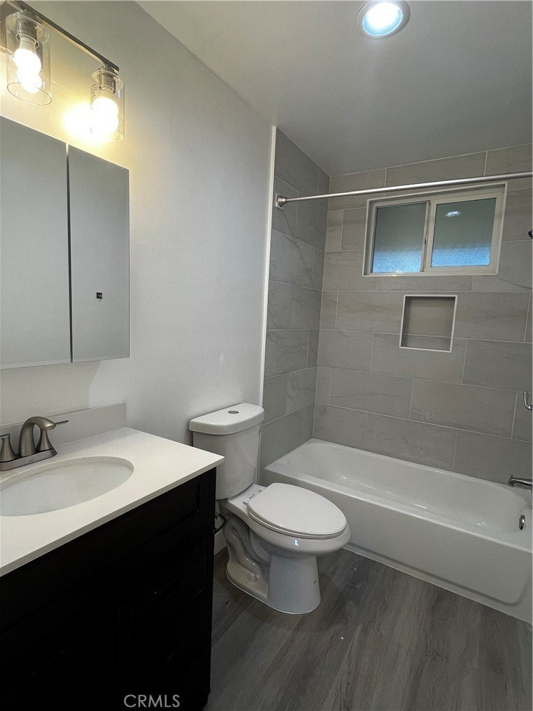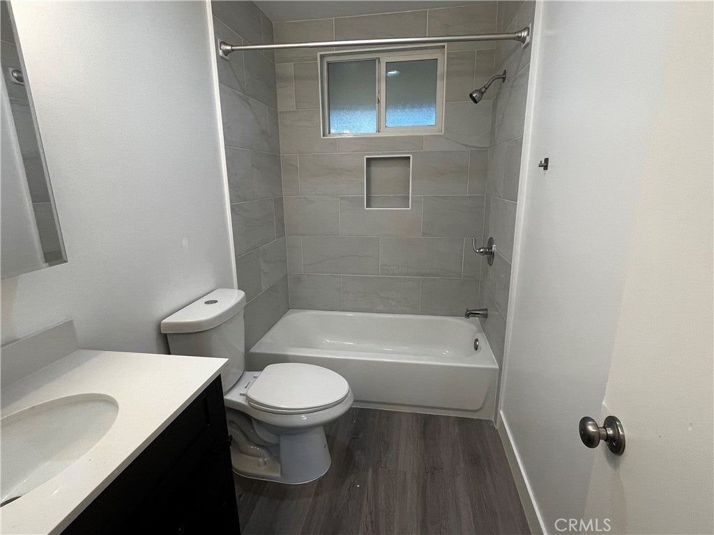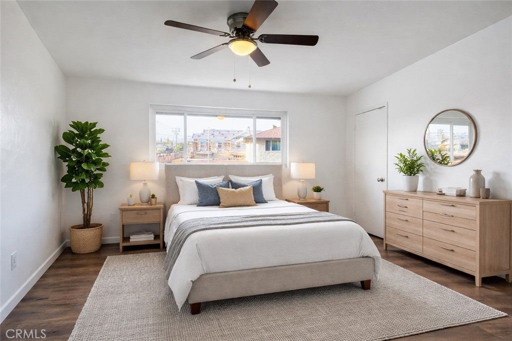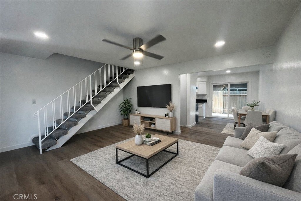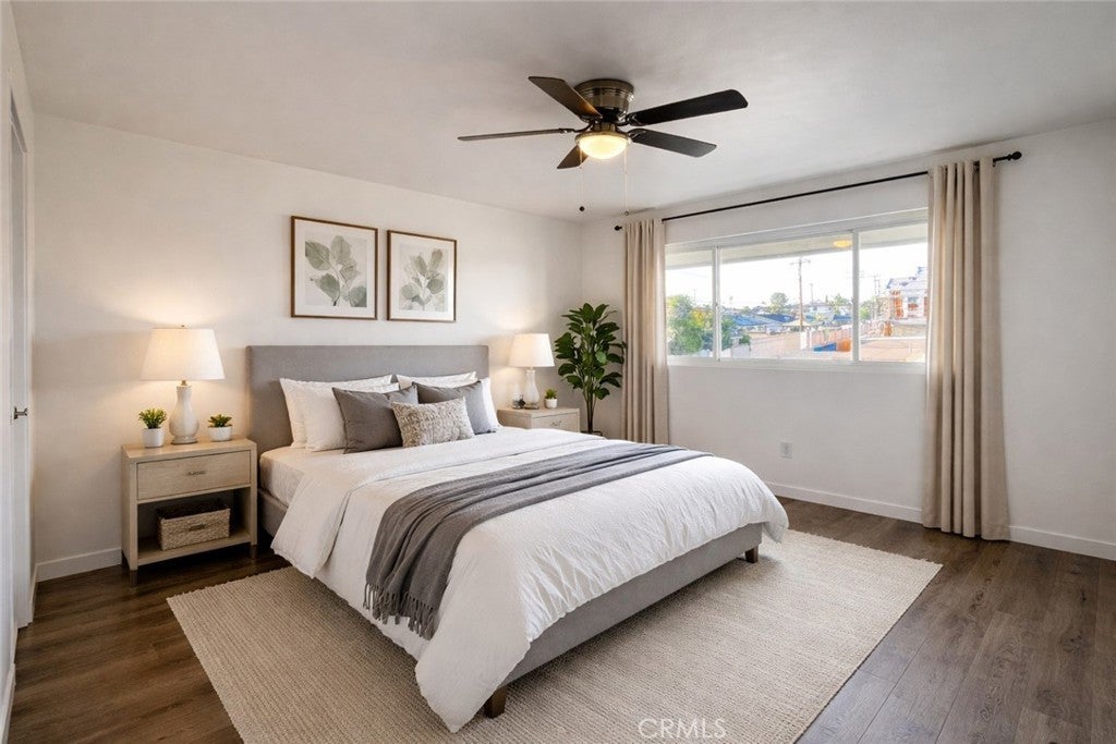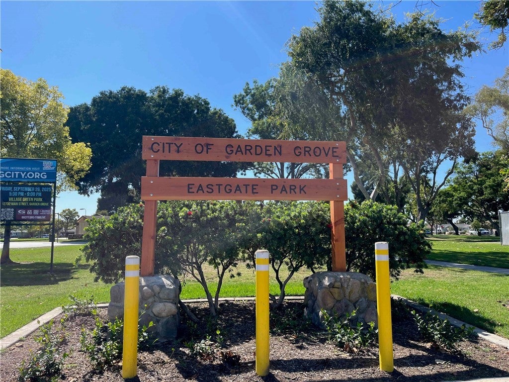 Prime location in West Garden Grove! Beautifully upgraded 2 bedroom, 1.5 bath unit showcasing fresh neutral paint, new vinyl laminate flooring, recessed lighting, ceiling fans, and dual pane windows. The modern kitchen features shaker cabinetry with stove and dishwasher. The upgraded bathroom adds a stylish touch. Enjoy outdoor living on your private patio, plus the convenience of a single-car garage and an additional parking space. Community laundry is available on-site. Ideally located near local parks, with easy access to the 405 and 22 freeways. Situated in a highly rated school district with school ratings 9-10 on Great Schools website.