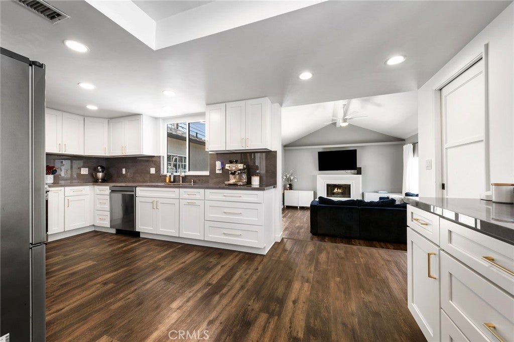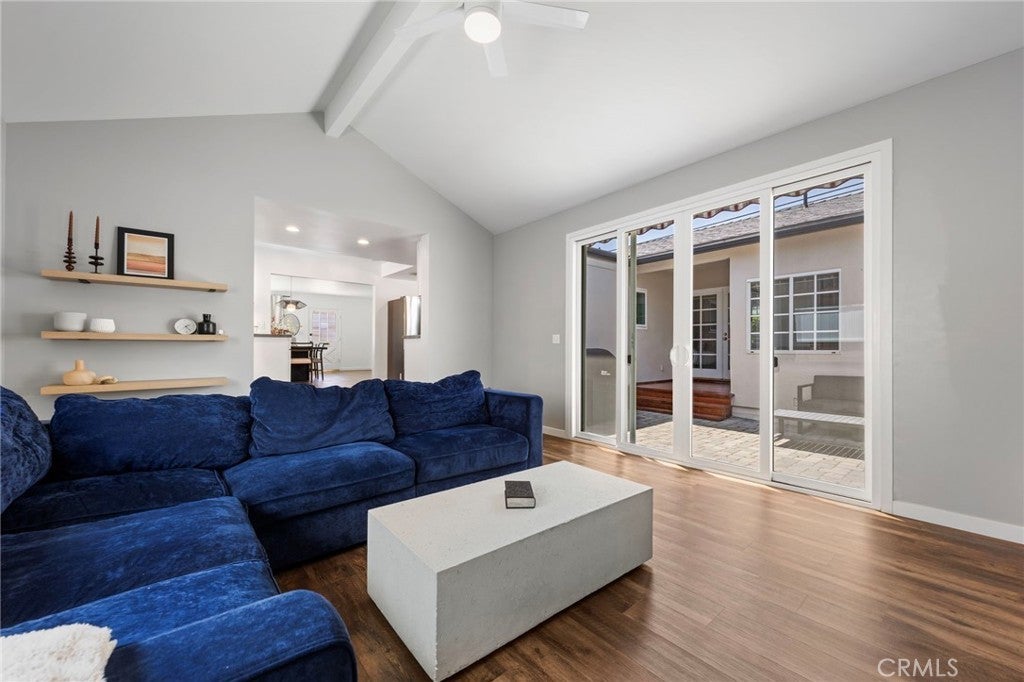 Welcome to this thoughtfully updated, 3-bedroom, 2.5-bath home offering the perfect blend of comfort, functionality, and inviting living spaces. Step inside to a bright, sun-filled living room, creating a warm and welcoming first impression. The layout flows seamlessly into a dining area and remodeled kitchen, where generous cabinet space and thoughtful design make everyday living and entertaining effortless. A spacious step-down family room with vaulted ceilings and a cozy fireplace opens directly to the backyard, offering the ideal setting for gatherings, movie nights, or relaxed indoor-outdoor living. The home’s standout feature is the expansive primary suite - your own private retreat - complete with a walk-in closet, spa-like ensuite bathroom, and French doors leading to the back patio. This wonderful home also boasts a versatile secondary bedroom with a convenient half bath, a dedicated laundry room, and multiple flexible spaces to suit your lifestyle; whether you need a home office, playroom, gym, or guest accommodations. Additional features include central AC, new roof, new dual paned windows, new exterior paint, and a tankless water heater. Situated in a quiet residential neighborhood, this home offers both privacy and accessibility, making it an ideal place to settle in and grow.