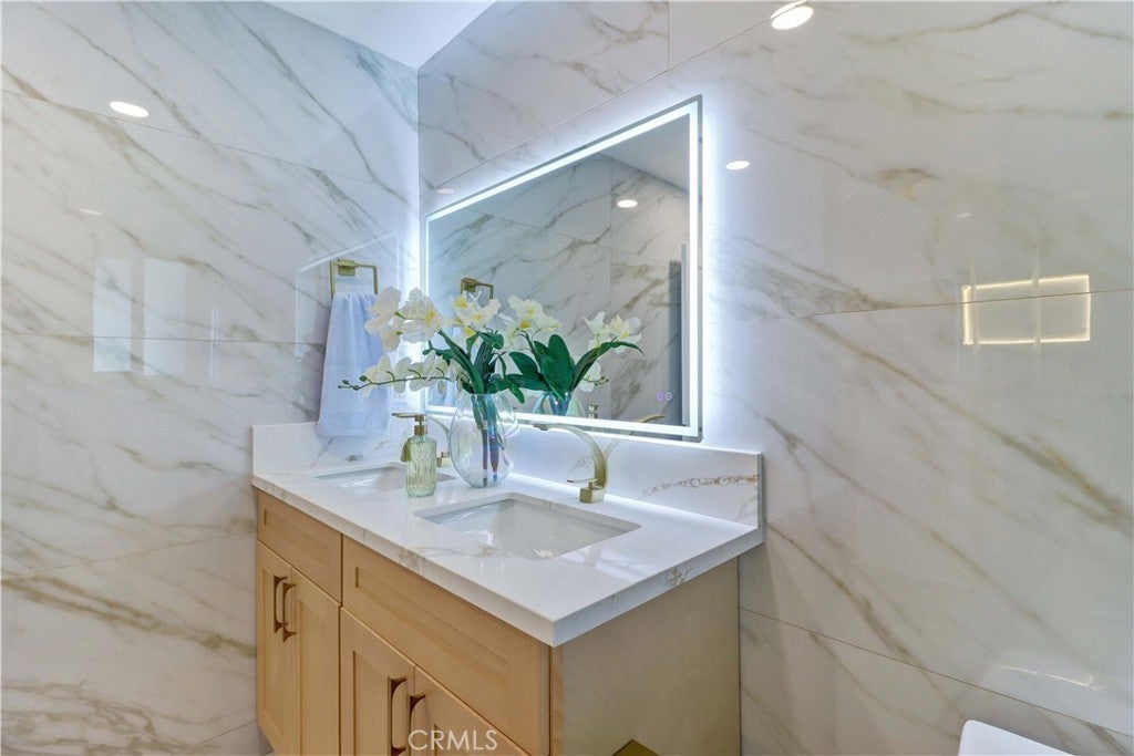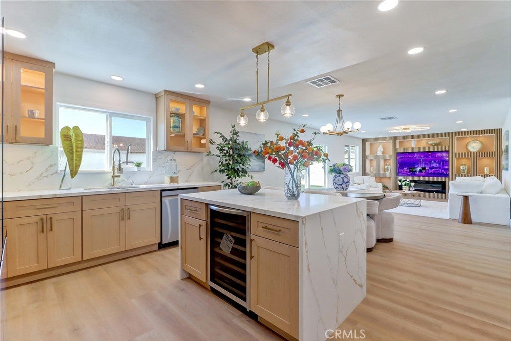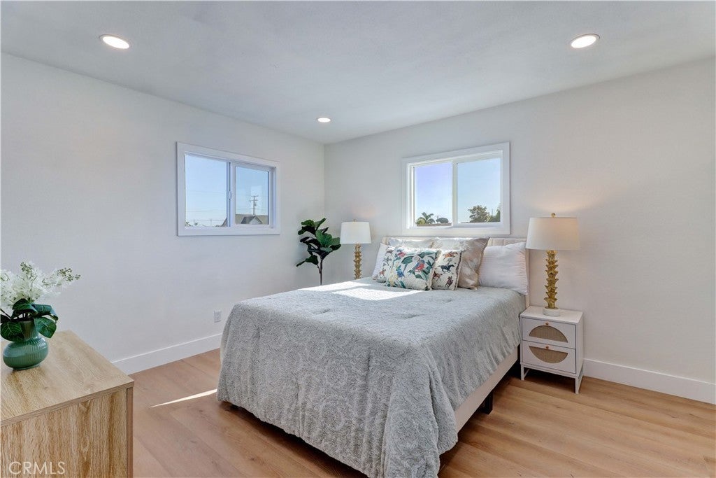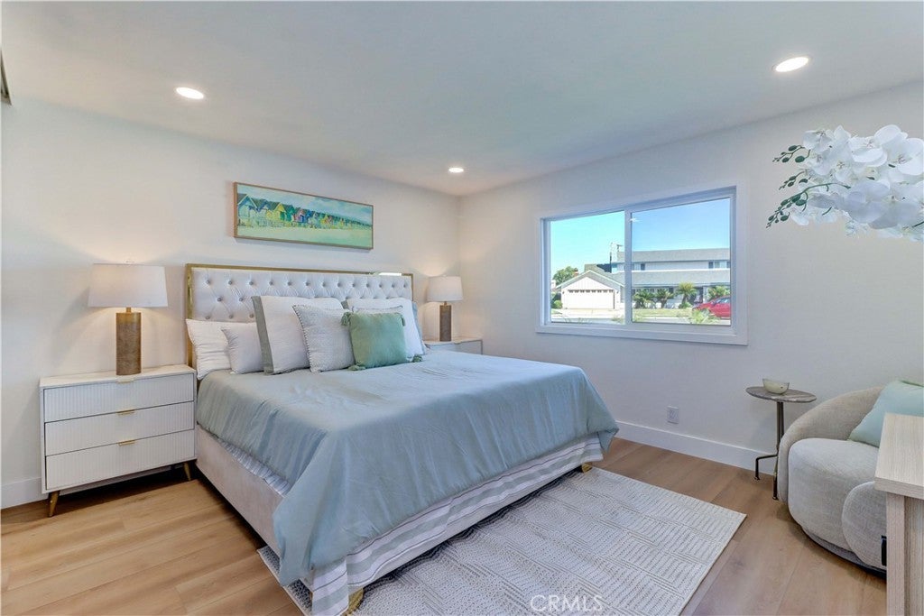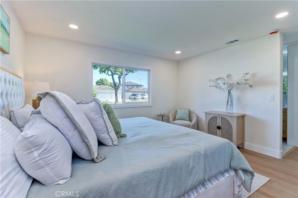 • Two Master Bedrooms — ideal for multi-generational living or guest accommodations . • Fully renovated 6-bedroom, 4-bath home on a desirable corner lot in Fountain Valley. Beautifully renovated and fully permitted, this spacious 6-bedroom, 4-bathroom home features a bright, open floor plan with modern upgrades throughout. The remodeled kitchen includes brand-new appliances and opens to the main living areas. All bedrooms and bathrooms have been tastefully updated, complemented by new interior and exterior paint, recessed lighting, and a contemporary fireplace. Smart-home features allow control of lighting, security cameras, and the HVAC system through the Alexa app. Major improvements include new windows, new doors, and a complete HVAC system. The finished garage with epoxy flooring adds additional functionality. Two newly added full bathrooms upstairs provide enhanced convenience for larger households. Exterior upgrades include new landscaping, a redesigned driveway for added privacy and curb appeal. Located near Mile Square Park, shopping, dining, major freeways, and the Little Saigon community, this move-in-ready home offers exceptional space, modern upgrades, and a prime Fountain Valley location.