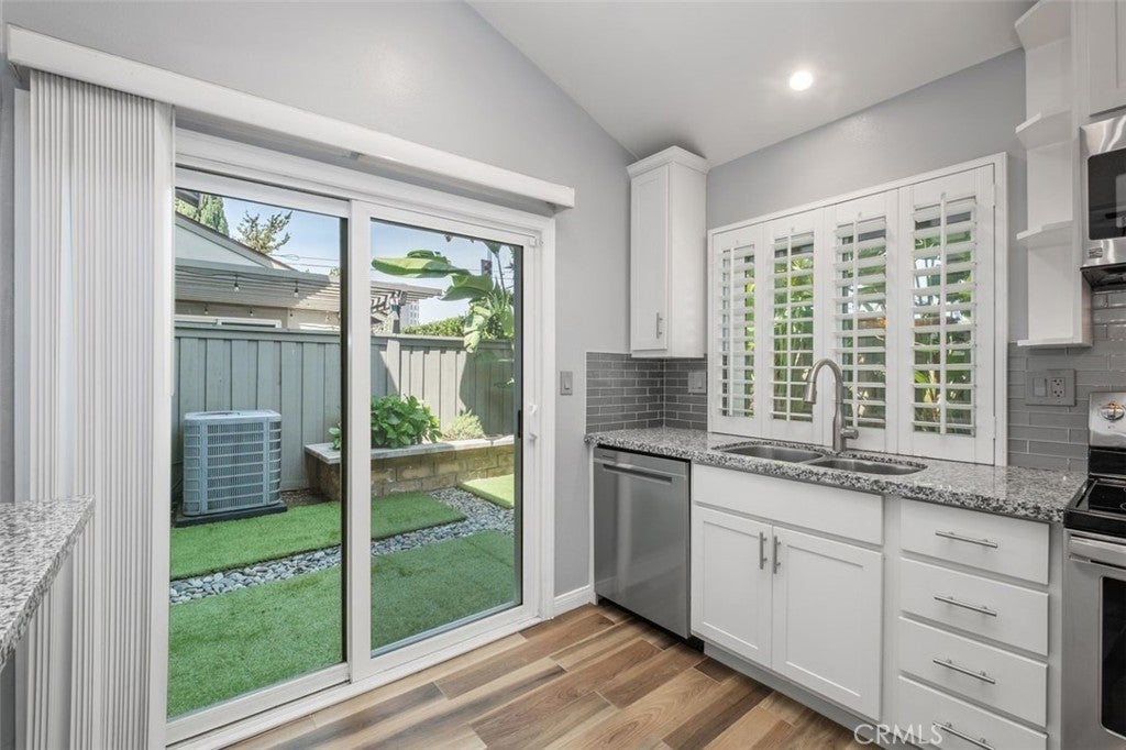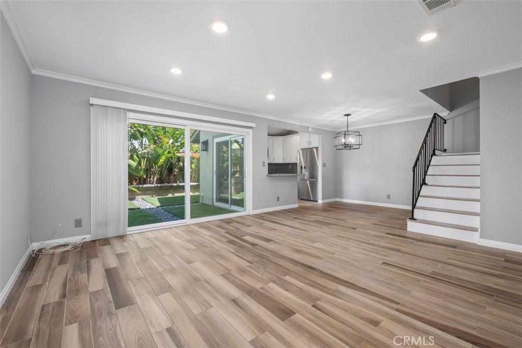 WOW! Another charming townhome located in the desirable Park Tustin community. This spacious residence features 4 bedrooms and 2.5 baths, along with one assigned parking space and a one-car garage, and is ready for immediate move-in. Enjoy the convenience of walking to the Enderle Center, offering a variety of restaurants, shops, a fitness center, and Citibank. The front yard is beautifully landscaped and provides direct access to the parking space and garage. A security door and updated entry door welcome you inside. The home opens to a bright living room with porcelain tile flooring throughout the main level and an open, inviting floor plan. Additional upgrades include newer vinyl windows and doors, accent lighting throughout the kitchen and living areas, and plantation shutters with upgraded blinds. The downstairs fourth bedroom includes an upgraded half bath and offers flexible use. The kitchen features porcelain tile flooring, a vinyl sliding door, and upgraded appliances including a dishwasher, stove, refrigerator, and microwave. An upgraded stairway leads to the second floor, where you’ll find three additional bedrooms and two full baths, along with accent lighting and ceiling fans. All interior doors are custom. The primary bedroom includes vinyl windows and flooring, along with an upgraded bathroom featuring a new vanity, toilet, and shower. This well-maintained home combines comfort, style, and a prime location in Park Tustin.