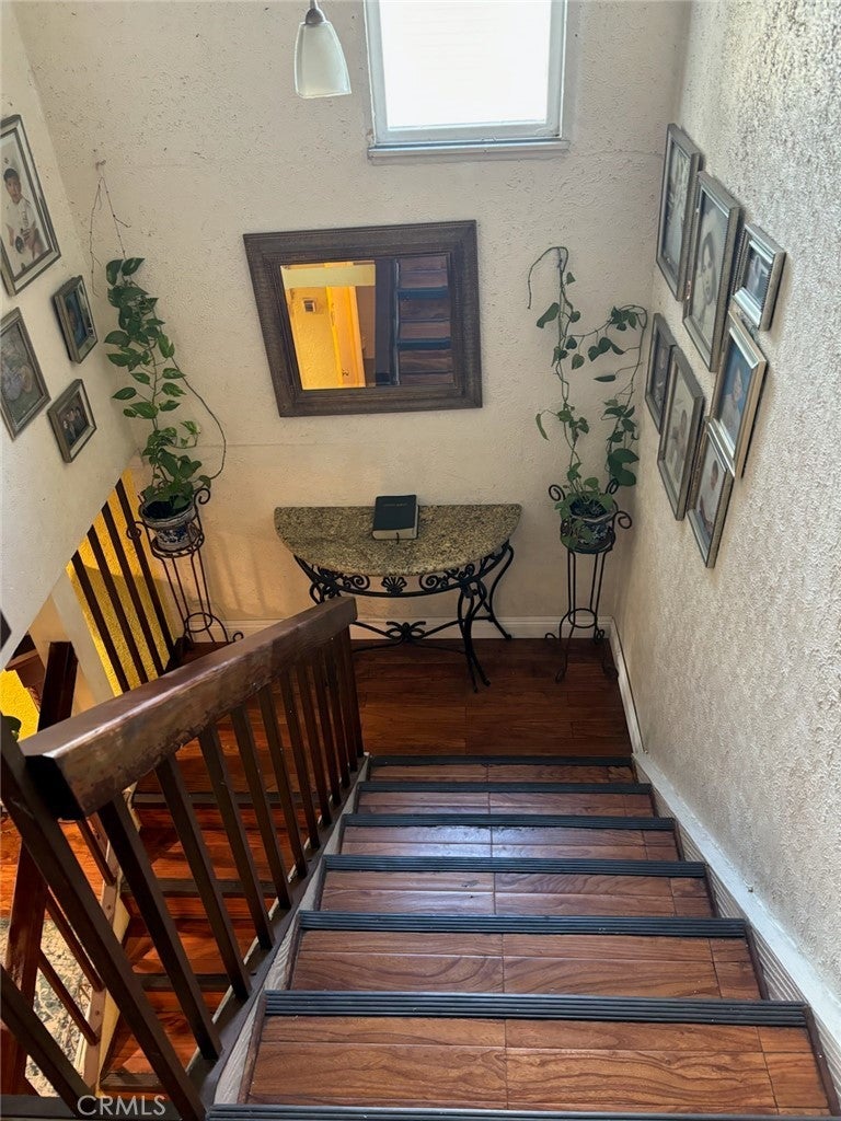 This exceptional two-story condominium in Paramount offers three spacious bedrooms, two and one-half bathrooms, hardwood flooring throughout, and tile in the bathrooms. The kitchen and bathrooms feature elegant granite countertops, and a two-car garage includes laundry facilities. This desirable property is expected to sell quickly.