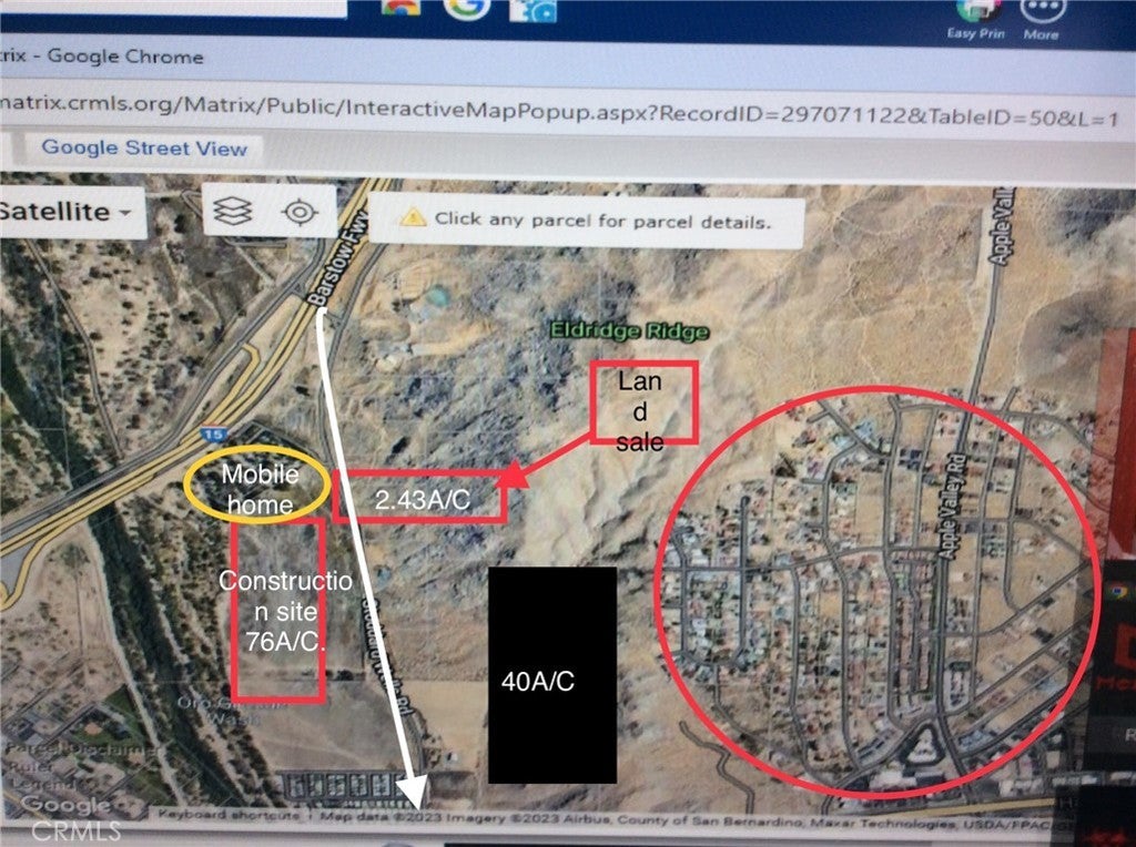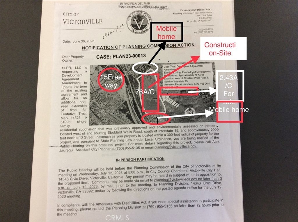 Selling!! Selling!! land with numerous opportunities and investment potential. Zoning is R-1/B1/2. APN:0473-162-40-0000. This is a land where you can build a private home and another home in a quiet and cozy place on a hill with an amazing view. Even the potential for the new buyer to build not ONE but TWO homes on this flat, usable land!! And Incredible Rock Formations, Offering a Very Attractive Backdrop and Very Inviting Environment. The name of the freeway exit 15 is Stoddard Wells Rd. It is located next to a paved road and the surrounding homes already have utility facilities, water,electricity and public sewerage and are ready for new investors. And the surprising fact is that a PUD housing complex is scheduled to be built on 76 A/C in front of our land that we are trying to sell, and a mobile complex that is currently in operation is located in front. The land we are trying to sell is in the R-1 area.However,the lands on both sides owned by other owners are in commercials areas, and many commercial projects are planned. Many recent roadway and freeway improvements in the area including D St/Interstate 15, Apple Valley Rd/Hwy 18, Stoddard Wells Rd/Interstate 15. There is talk of a new highway that will end/start at Stoddard Wells and go out to the Palmdale/Lancaster area check and verify with CALTRANS. Also, not far from the proposed high speed rail from Victorville to Las Vegas. Dear investors and actual users ! I am confident that a wise investor will definitely purchase land with such good conditions.