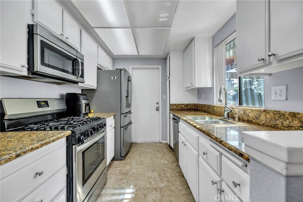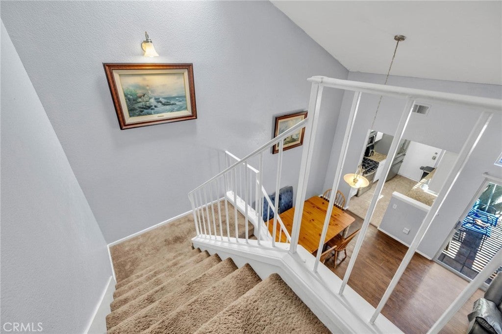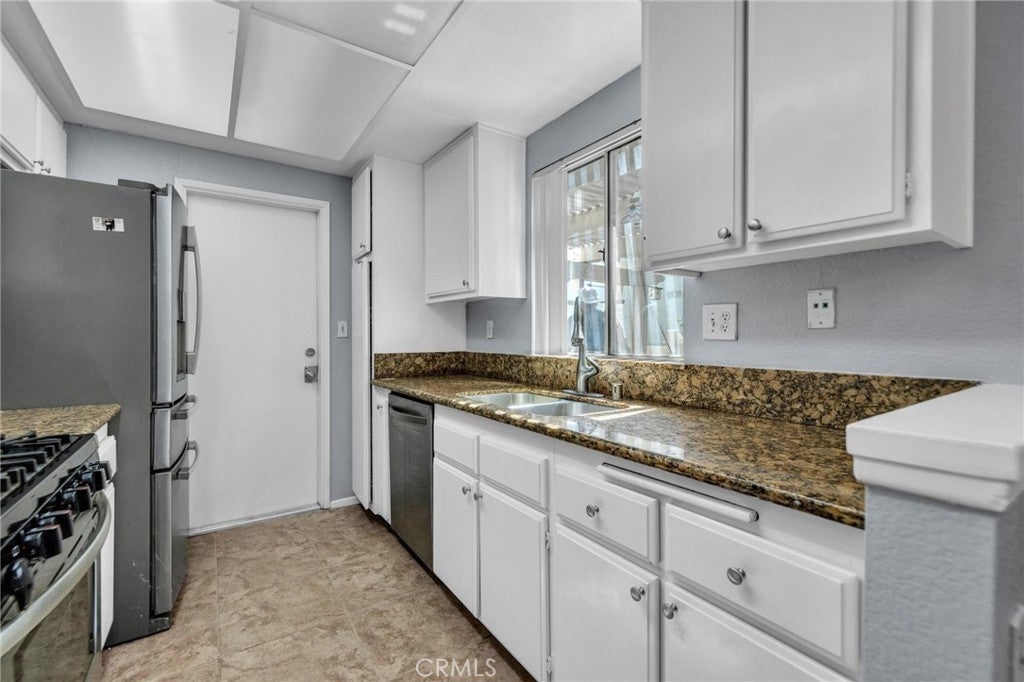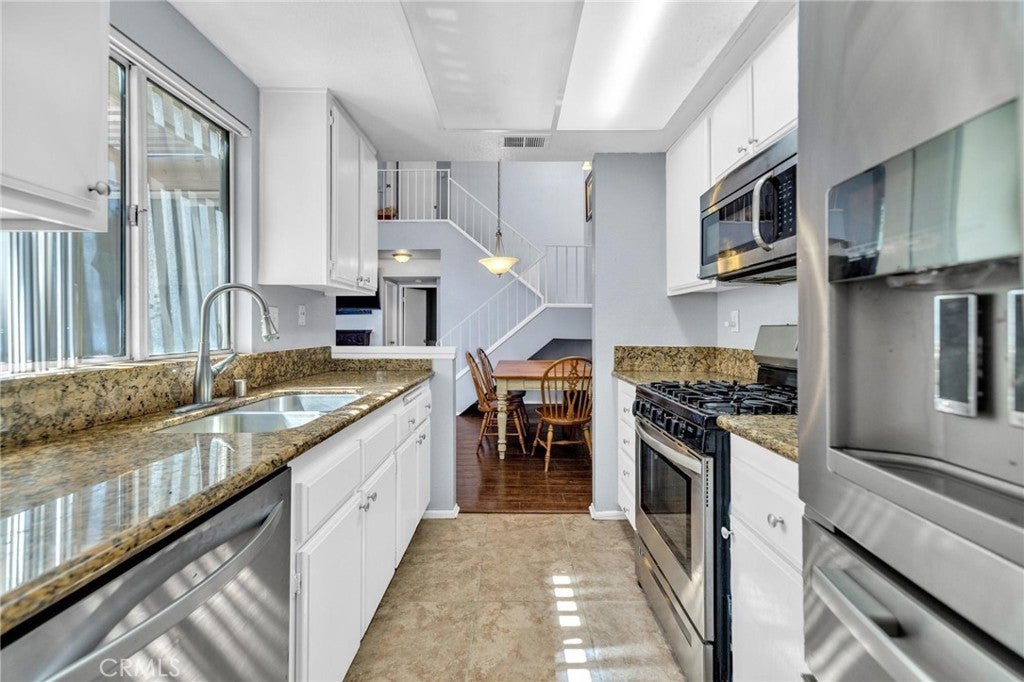 PRICE REDUCED !!!!!!!!! Welcome to your new home which offers a move-in-ready living space. Walk into a split-level layout with spacious living room and dining area which provides flexibility, while modern finishes like granite counters give it a contemporary edge. Bedrooms are spacious and separated for privacy with one room downstairs and one room upstairs. Outdoor living is a bonus with a private covered patio, and parking is convenient with both garage and assigned space. The LOW HOA offers amenities which include pool, spa, luscious greenery which add leisure value, and the overall location provides easy access to schools, shops, and freeways. This beautifully maintained complex had recent roof replacement as well. Don't miss this opportunity to own in the highly desirable Laurelwood Community of Corona