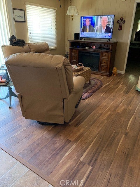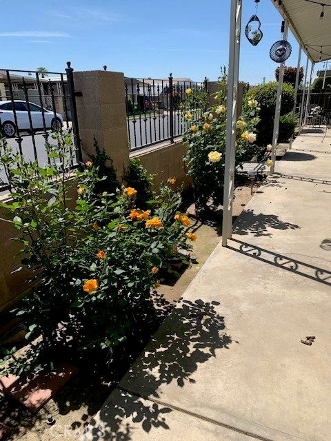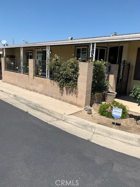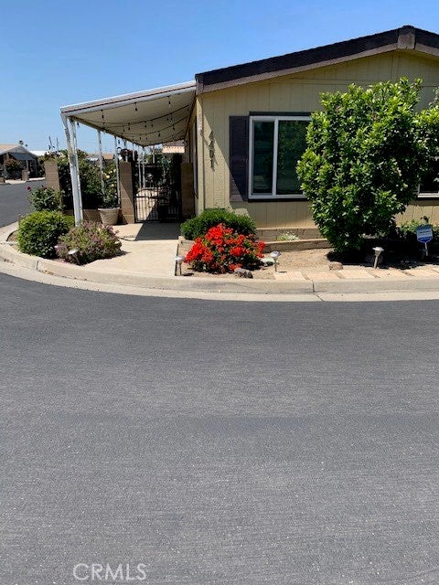 RARE corner lot with garage door! This home has it all. Perfectly situated on a premier corner lot right next to the mail boxes and across the street from the golf course. Not many mobile homes can say they have an enclosed driveway (garage) with separate double shed for maximum storage. The kitchen was completely renovated and updated in 2023 with a custom coffee bar next to the pantry. This home has a large covered porch area with lovely rose bushes, plants, and faux grass at the rear of the yard. Completely fenced in for privacy and security. Less than a year old hardwood floors in the living area. Bedrooms have carpet. Mirror closet doors in secondary bedroom. Laundry is inside the home and laundry area can also serve as an office area. Separate formal living area and dining room, with family room (den) off kitchen. Master bedroom has private bathroom with Roman tub and stand up shower, and dual sinks. Second bedroom has ensuite bathroom that also connects to laundry room and has walk-in shower.