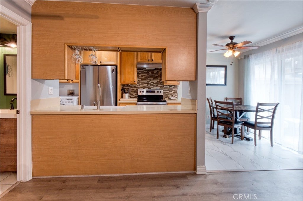 This lovely townhome is one of the largest units in the community. It comes with three bedrooms, three bathrooms and two car parking. This air-conditioned home features remodeled bathrooms, new vinyl plank flooring on the first floor, ceramic tile in the kitchen, dual pane windows, and wood flooring in the bedrooms. All three bedrooms feature walk-in closets. The washer, dryer, refrigerator, range, dishwasher, and microwave are all included. There is additional storage in the private garage. The enclosed patio offers privacy and convenience for outdoor entertaining. This is an end unit with a short walk to the pool and clubhouse. HOA dues include gas, water and trash utilities.