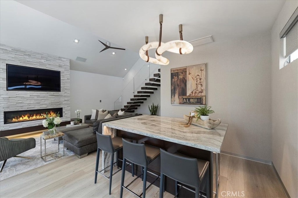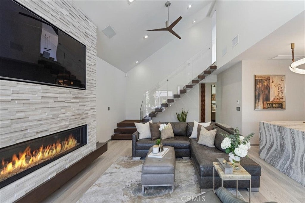 Stunning Modern Masterpiece on Naples Island! Welcome to 29 W Neapolitan Ln, a completely reimagined coastal masterpiece nestled in the heart of highly sought-after Naples Island. This immaculate 3-bedroom, 2-bathroom residence spans approximately 2,000 square feet and was fully rebuilt from the ground up, showcasing top-tier craftsmanship and premium finishes throughout.Step inside through a dramatic 10-foot custom front door and experience soaring 12-foot ceilings and a striking floating staircase that anchors the open-concept living space. Sleek LVP flooring over 24" x 24" white porcelain tile exudes modern elegance, while floor-to-ceiling glass blurs the line between indoor and outdoor living. The chef’s kitchen is outfitted with high-end Thermador appliances, custom cabinetry, a wine cooler, and aluminum baseboards—all designed for both style and function. The spacious living room features a raised gas fireplace and opens effortlessly to a raised front deck with Coverglass “no post” corner glass, offering a clean, contemporary aesthetic and seamless views.The main level includes two spacious bedrooms and a full bathroom, ideal for guests or multigenerational living. Upstairs, you’ll find the luxurious primary suite, complete with a private office area and access to a balcony—perfect for enjoying ocean breezes or winding down with a sunset view.No detail has been overlooked—from the integrated Sonos surround system and LED lighting to the interior barn doors and raised, in-wall tank toilets. Comfort and efficiency go hand in hand with dual HVAC systems, a sleek metal roof, and an ADT security system. The attached 2-car garage features 12-foot ceilings, epoxy flooring, a roll-up door, 220V welding outlet, and is lift-ready—ideal for auto enthusiasts.Additional features include an outdoor shower, electric privacy shades, frosted privacy windows, central vacuum system, and beautifully landscaped outdoor spaces for entertaining or relaxing.Just steps from the canal, Naples Fountain, and Long Beach Yacht Club, and walking distance to award-winning Naples Bayside Academy, this home offers a rare opportunity to live luxuriously in one of Long Beach’s most coveted coastal communities. This is a must see to appreciate!