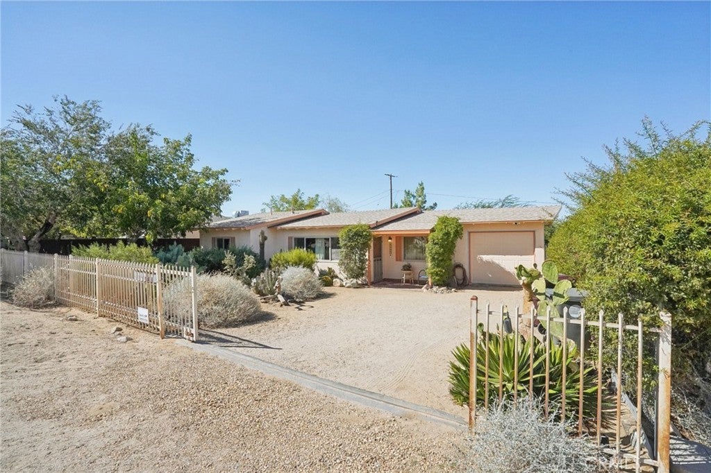 Welcome to 61494 Sunburst Drive, a charming desert getaway in the heart of Joshua Tree. This 2-bedroom, 1-bath 1,265 sq ft home is the perfect blend of affordability, comfort, and timeless desert style. Bright and welcoming, the living room features large windows that bring in natural light and showcase sweeping desert views. The kitchen offers plenty of counter space and cabinetry, making it both functional and inviting. Two cozy bedrooms provide restful retreats, while the full bath is designed with simplicity and ease. Set on a spacious lot with classic desert landscaping, this home offers room to relax, entertain, or expand. Imagine evenings under the starlit skies, weekend gatherings with friends, or creating your own desert oasis—all just minutes from Joshua Tree Village and the National Park. Whether you’re looking for a first home, a weekend escape, or an investment opportunity, 61494 Sunburst Drive delivers style, comfort, and value in one of Southern California’s most iconic destinations.***A MUST SEE***