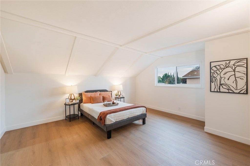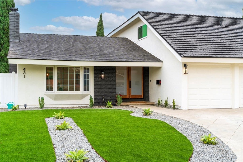 Welcome to this beautifully renovated Glenbrook Community home with a 3-car garage, where modern design meets luxurious comfort. Located in a highly desirable neighborhood in Brea, CA. This stunning property boasts a spacious open floor plan with 5 generously sized bedrooms and various premium features that elevate your living experience. There are 2 bedrooms downstairs, including a primary suite with another 3 bedrooms upstairs with an EXTRA primary suite. There are peek a boo views from 2 bedrooms upstairs. Four (4) full bathrooms have been tastefully renovated with modern mid-century touches. Step inside through a beautiful custom wood double door and be greeted by an inviting ambiance, enhanced by recessed lighting, new whisper-white interior paint, and premium laminate wood flooring throughout the entire home. The heart of this home is the chef-inspired kitchen, complete with gleaming quartz countertops, all-new stainless steel appliances, shaker-style slow-close cabinetry, and a custom peninsula, perfect for both cooking and entertaining. There is a warm and inviting family room and a separate formal living room, which features a beautiful fireplace, providing a perfect setting for relaxing. This home offers a 3-CAR GARAGE providing ample storage or to use as a gym/hobby space. Enjoy the large and private backyard to host all of your special gatherings. With its thoughtful design, premium finishes, and a fantastic layout, this home is the perfect blend of modern living and comfort. Low HOA featuring great amenities such as basketball court, pickleball court and a Junior Olympic-size swimming pool. Great location with award-winning Brea-Olinda school district, don't miss this chance to make this property your DREAM HOME!