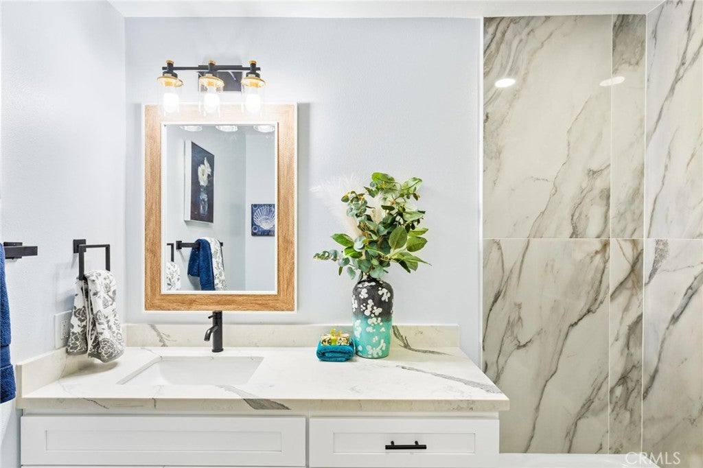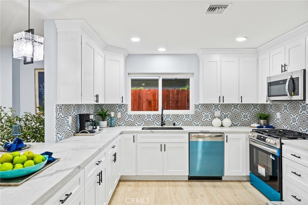 More pictures to come today. Step Into Your Dream Home! Discover this stunning single-level 3-bedroom, 2-bathroom home offering 1,534 sq. ft. of upgraded living space on a generous 7,590 sq. ft. lot. From the moment you arrive, the meticulously landscaped front yard and charming accent door set the tone for what’s inside. Highlights You’ll Love: Bright & Open Layout: A welcoming living room with an electric fireplace flows seamlessly into the spacious, upgraded kitchen—perfect for entertaining. Chef’s Kitchen: Enjoy quartz countertops, a peninsula island with breakfast bar, tile backsplash, recessed lighting, and a new appliance package. Modern Finishes: Freshly painted interiors, elegant tile and vinyl flooring, and abundant natural light throughout. Primary Suite Retreat: Features a walk-in closet and a luxurious ensuite bath with a walk-in shower and quartz counters. Ample Parking & Storage: A finished garage with new door and opener, plus a driveway that fits three cars. Outdoor Oasis: A large patio with enclosed area and lighting, low-maintenance landscaping, and room to add a pool or garden. Location Perks: Conveniently close to Fwy 22 and 55, offering easy access to everything Southern California has to offer. This home blends comfort, style, and functionality—ideal for both relaxation and entertaining. Don’t miss out! Schedule your private tour today and make this beautiful home yours.