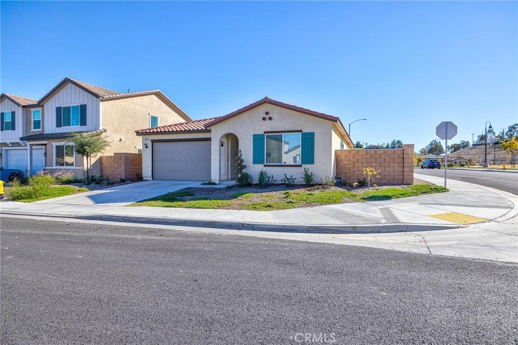 Located in the Terracina community, this beautiful 3 bedroom 2 bathroom home built in 2024 features open concept filled with natural light. The large living room flows seamlessly into the spacious kitchen where you will notice there are plenty of cabinets, large island, granite countertops,appliances, and walk-in pantry. The primary suite includes a roomy walk- in closet and modern bath with a large shower and soaking tub. This all electric home includes high ceilings, Energy Star construction, inside laundry, and an attached 2-car garage. The backyard is ready for you to add your personal touches. Situated on a corner lot , enjoy the Community park across the street which a perfect place to unwind and take in the neighborhood.