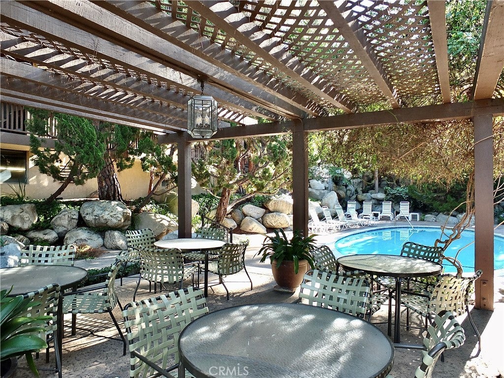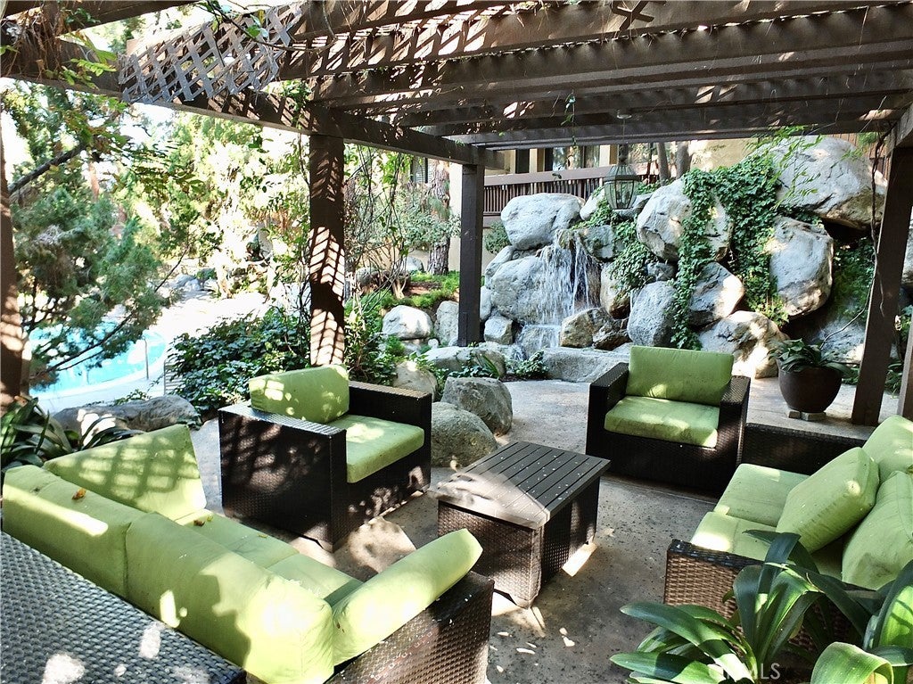 1655 Clark Ave, unit 124… an enchanting 2 bedroom 2 bathroom condominium, embracing ease and serenity in the wooded resort-like community of Clark Terrace… featuring cascading waterfalls, towering pines, lush landscaping opens to sparkling pool and spa in a tranquil glen, plus a tennis “club” boasting 2 beautifully maintained courts… tucked away only minutes from golf courses, the coast and beach cities with freeways connecting to all of Southern California! Approach on the lovely tree-lined garden pathway overlooking the waterfalls and pool… or via the convenient glass elevator from the secured 2 parking spaces below. Enjoy the treetop view through the entire unit as you step into the reception foyer. A stunning wet bar is central to the dining room and stepdown fireside living room, opening to a lovely lounge/ balcony amidst towering trees. The dining room and breakfast bar opens to the nicely appointed kitchen with granite countertops with stainless steel appliances. The laundry and storage are central to both bedrooms and bathrooms. The 2nd bathroom has dramatic lighting plus a walk in shower alcove. Bedroom #2 features great storage plus direct access to both the bedroom hallway and the foyer. Secluded… the primary suite includes a luxurious private bathroom with shower/ spa tub, a 3 mirrored door wardrobe closet, a large bedroom chamber plus glass door access to the balcony. Truly a stunning unit of casual luxury and natural warmth… all at Clark Terrace.