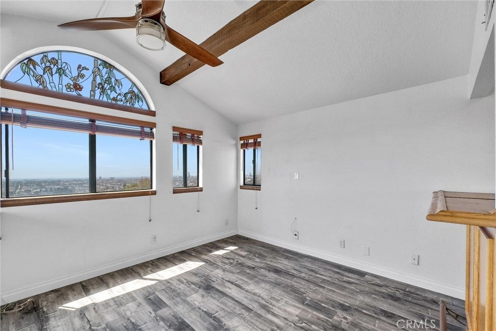 This rare tranquil corner unit on top of Signal Hill with expanded views of Long Beach and the Pacific Ocean can be yours to come home to. Featuring a calming Master Suite with ocean breeze and city lights, large walk-in closet, oversize spa jet tub with separate shower stall and double sinks vanity bathroom. Elevated level guest bedroom with views of the Long beach harbor. Top floor loft furnished with wet bar that presents panoramic views including theme park and holiday fireworks afar. Cozy sky balcony perfectly positioned for morning sunrise enjoyment. Additional bonus room at the entrance for multi-purpose usage. The loft and the den can be additional sleeping quarters expansion for the clever minded. Updated galley kitchen with quartz counters, shaker cabinets, modern appliances, and a breakfast area. Naturally sunlighted family room with cozy fireplace open to dining area. Convenient laundry room on upper level with washer and dryer hook ups. Gated 2 parking spaces with storage spaces. This unit is located within minutes of driving to the nearby restaurants, shopping centers, local airport, freeway, university campus, and the famous Signal Hill park.