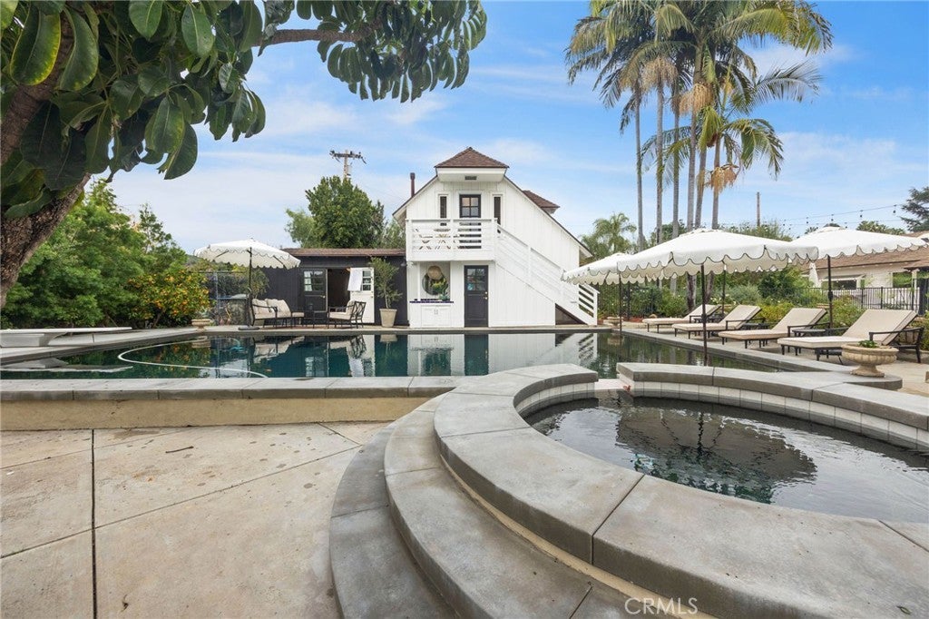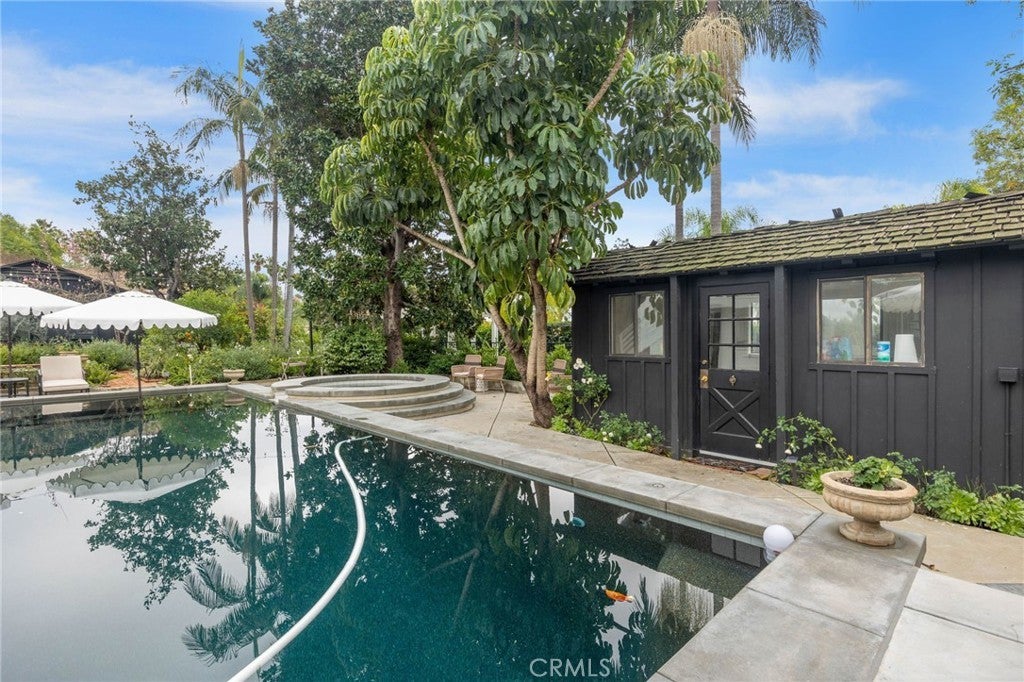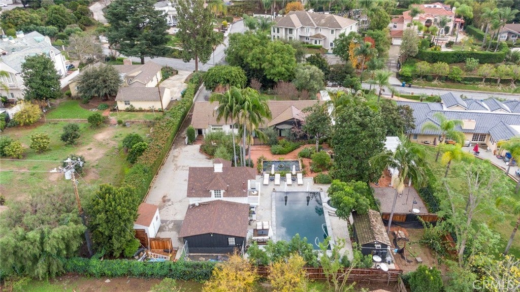 Tucked behind a private gate on one of Friendly Hills’ most sought-after streets, 8331 Enramada is a rare, resort-style estate set on an expansive 29,551 sq ft lot, blending timeless charm with exceptional versatility. - - PRIMARY RESIDENCE 2734 sqft | 3 Bedrooms | 2.5 Bathrooms - - The main home welcomes you with classic hardwood floors, custom millwork, and enduring craftsmanship throughout. Each of the three generously sized bedrooms features walk-in closets with built-in cabinetry, offering both elegance and functionality. Beveled glass windows and a skylights bathe the interiors in natural light, creating a warm and inviting atmosphere. The home is turn key, yet also presents a wonderful opportunity for the next owner to thoughtfully refine and personalize details to their vision. The chef’s kitchen features a large soapstone island, with pot filler and Wolf range; large custom hood, and premium Viking, and Miele appliances. The space is complemented by an adjoining butler’s pantry, laundry area, and powder bath and formal dining room. - - POOL HOUSE / ADU | ADDITIONAL Approx. 715 Sq Ft | 1 Bedroom | 1.5 Bathrooms. -- Ideal for guests, extended family, or income potential, the detached pool house/ADU offers a pool level full kitchen, and half bath, while the upper level provides a private one-bedroom, one-bath retreat with walk-in closet. There is private laundry area located in the garage. - - Additional Structures & Features - - HOME GYM - APPROX 128 sq ft poolside gym with air conditioning - - STORAGE SHED - APPROX 125 sq ft - - Resort-Style Grounds - - The lush, park-like grounds are a true sanctuary and include: - - POOL: Recently refinished swimming pool with pebble finish, Baja ledge, new heater, and rare diving board - - KOI POND AND FOUNTAIN: Creating a serene separation between living and pool areas - - GREEN HOUSE - - RAISED GARDEN BEDS - - MATURE FRUIT TREES: Apricot, peach, plum, loquat, orange, and grapefruit - - ROSE GARDEN: Hundreds of rose bushes, offering breathtaking spring and summer blooms - - This exceptional property offers privacy, space, and resort-level amenities in one of Whittier’s most coveted neighborhoods—a truly rare opportunity to own a legacy estate in Friendly Hills.