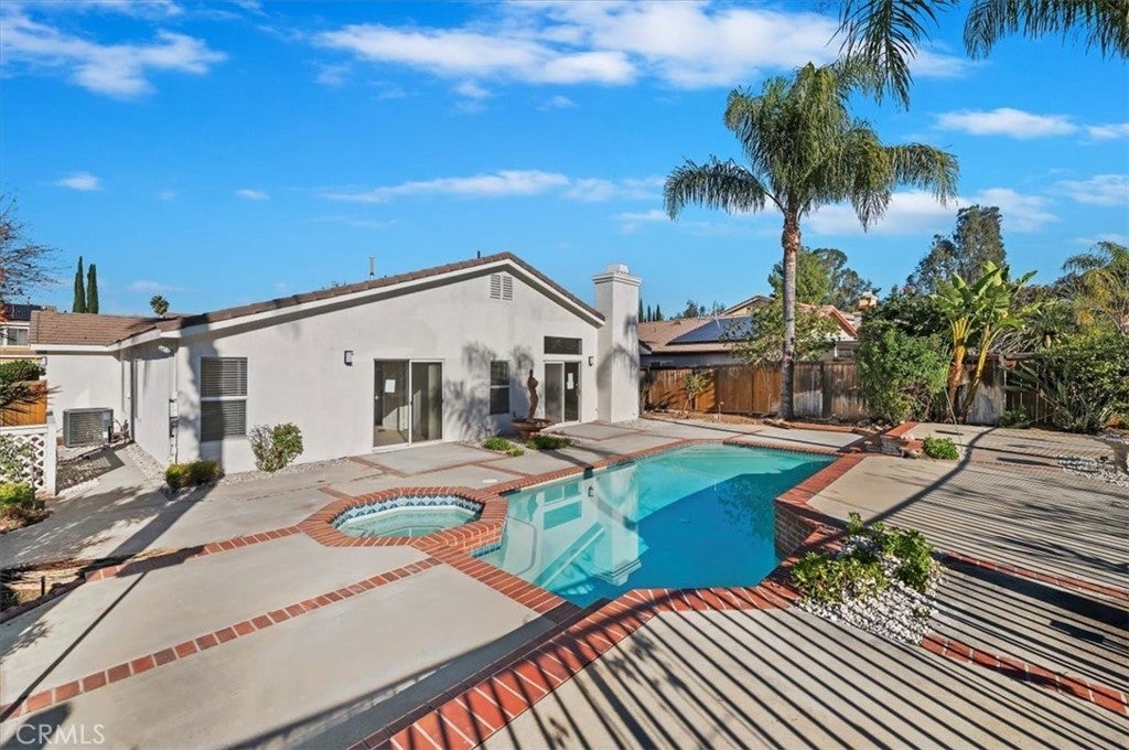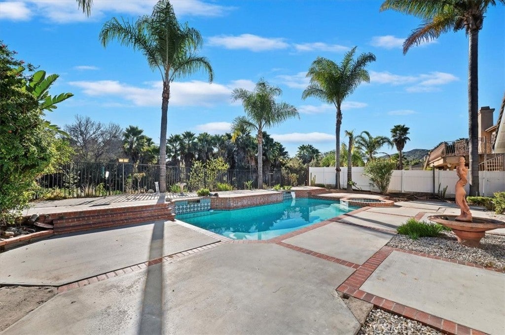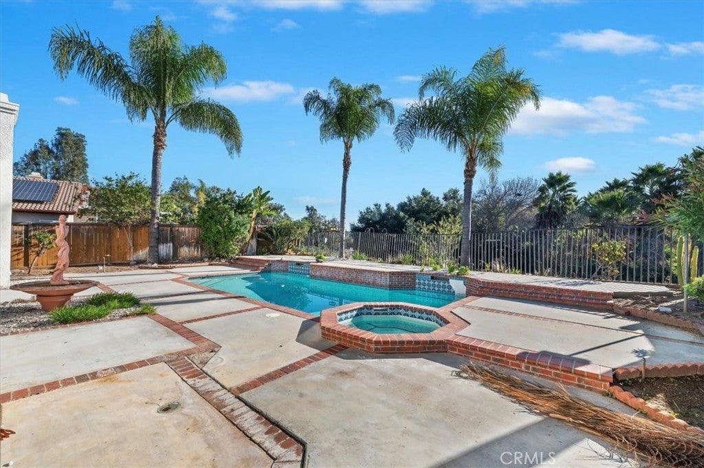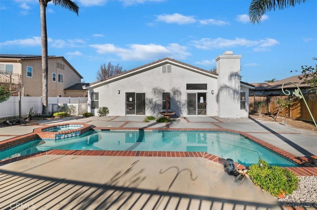 Welcome to your new pool home! This home has beautiful curb appeal and is nestled in a gorgeous neighborhood. As you walk into the home, you will notice the amazing natural lighting and open layout. The new kitchen, with all new cabinets, appliances and a large island is great for entertaining guests. Large double door pantry, ceiling lights throughout and ceiling fans. Central heat and A/C. This home features a 4th bedroom that was optional when the homes were built. Indoor laundry room with plenty of cabinets. Master bed and bath, walk in closet, too much to list. Master bedroom also has its own glass door to the backyard, where you will find your own private pool and spa. Backyard is spacious with beautiful Palm Trees and landscaping. Behind the house is a view of the greenbelt Come make this your new home!
