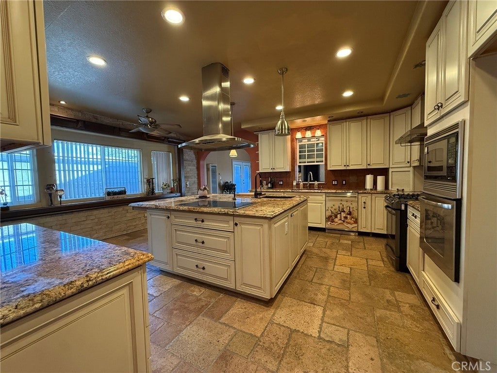 Come see this spacious 3 bedrooms, 2 full bath home. This lovely property has a dream kitchen featuring two stoves, two sinks, a large island and custom cabinets perfect for entertaining, or anyone who loves to cook. It has a spacious den next to the kitchen, convenient inside laundry with a full bathroom. Outside, you’ll find a large back patio, ideal for barbecues, gatherings, or simply relaxing outdoors. You also have a large workshop, perfect for hobbies and crafts or extra storage. This home is a great opportunity for anyone looking for a chef’s kitchen, a spacious main bedroom and a custom workshop all in one place.