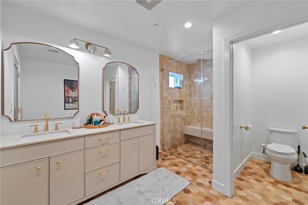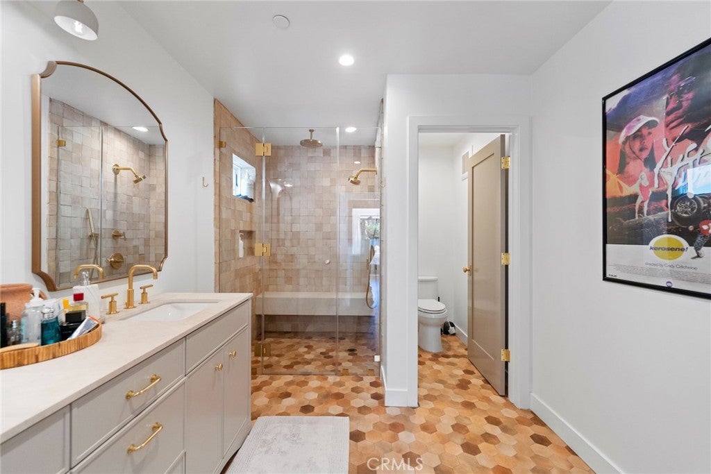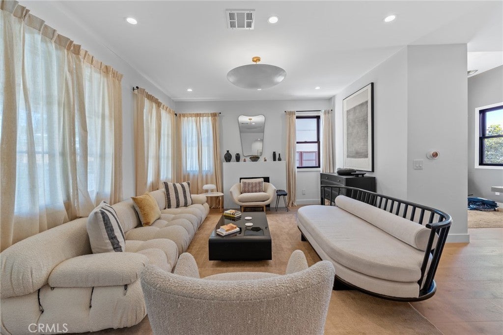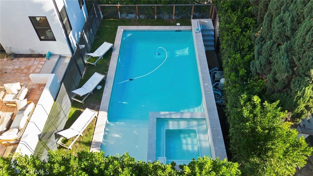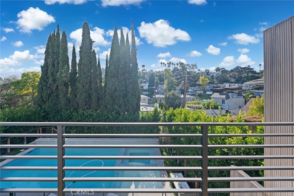 $100K Price Improvement. A rare opportunity to secure a fully gated, architecturally reimagined Silver Lake estate offering exceptional privacy and resort-style living. In 2023, the home was rebuilt to the studs and expanded with a new second story, totaling 2,773 sq. ft. The property also includes a newly built two-story 809 sq. ft. ADU and a newly constructed heated saltwater pool, spa, baja shelf, framed by mature trees, privacy hedging, and new hardscape. Located within the Ivanhoe School District and moments from the Silver Lake Reservoir and neighborhood dining and shopping, the home offers tranquility without compromise. The main residence features two true primary bedroom suites (one upper level, one lower level), an additional upstairs bedroom, a downstairs den opening to an outdoor dining area, multiple decks, and a flexible bonus space for office, gym, or storage. Past the newly landscaped front yard and custom iron front door, the home opens to a living room with an updated fireplace and chimney, flowing into a chef’s kitchen with slim-shaker soft-close cabinetry, Calacatta Taupe Quartzite counters and island, Zia Zellige backsplash, Rejuvenation hardware, Newport Brass fixtures, and a Thermador appliance suite. The dining area overlooks Cyprus trees and the pool, with a nearby flexible room for office or family use. Upstairs features the upper-level primary suite in a private wing with walk-in closet, balcony, and spa bath with Calacatta Gold marble dual vanity, Kohler rain shower, and Zia Zellige tile, plus an additional bedroom, hall bath with Crema Breccia finishes, and full laundry with custom cabinetry and LG stackable washer/dryer. The lower-level primary suite includes a Crema Marfil marble vanity and direct access to the den and backyard. Exterior features include a newly built heated saltwater pool with three linear fountains, Akuza Sky porcelain tile backsplash, removable pool safety fence, Ipe railing, Saltillo exterior flooring, new irrigation, mature Ficus and Carolina Cherry hedges, smooth plaster perimeter walls, and a remote- and app-controlled driveway gate. Additional improvements include upgraded and new foundations, new roof and insulation, new ABS sewer lines with sump pump and ejectors, new plumbing, new 200-amp electrical system with smart wiring and EV charger, dual-zone HVAC with Nest thermostats, Marvin fiberglass-clad wood windows and accordion doors, concrete driveway, and smart dimmers throughout.