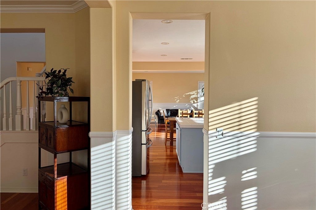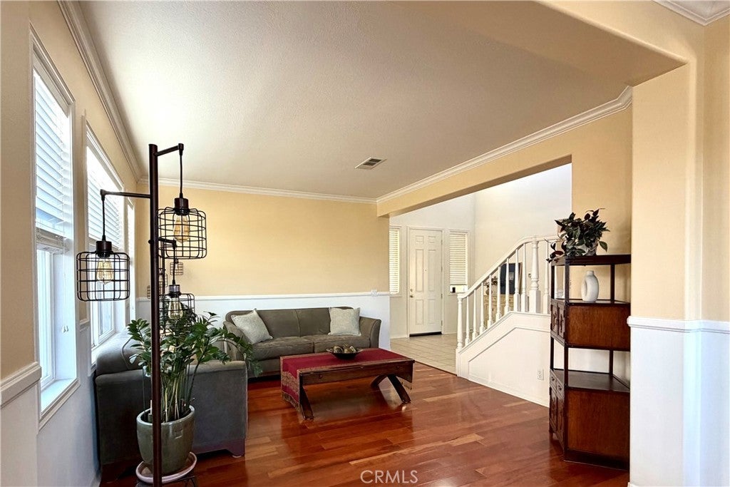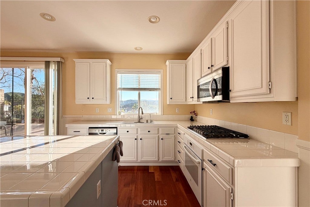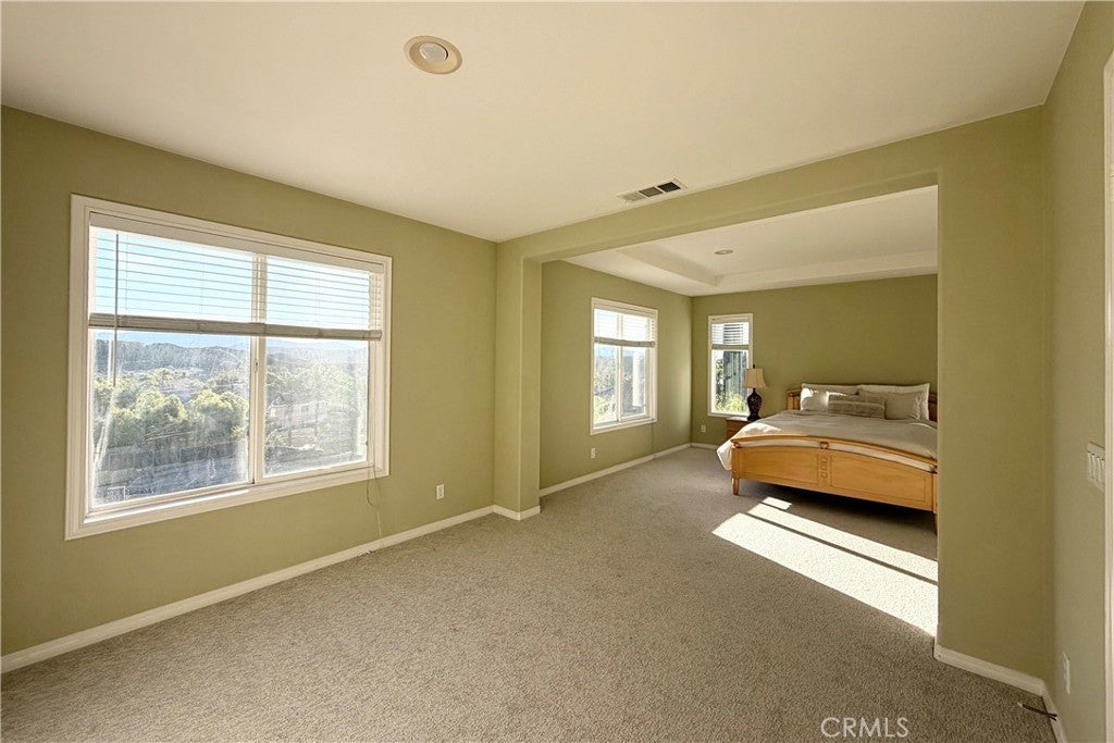 Experience the perfect blend of space and serenity in Santa Clarita’s safe, peaceful, and sought-after Estrella Vista neighborhood. This meticulously maintained 3,011 sq. ft. residence features 4 bedrooms, 3 bathrooms, and beautiful mountain vistas. The open-concept main level shines with high ceilings, engineered hardwood floors, and custom moldings. A downstairs bedroom and full bath provide ideal flexibility, while the upgraded kitchen and family room offer a seamless flow for entertaining. Upstairs, discover oversized bedrooms and a massive loft with custom cabinetry—perfect for a home office or media room. The primary suite is a true retreat, featuring a sitting area and custom closet. Outside, enjoy a private, low-maintenance yard with paver stones and mature trees. The gated front entry offers enhanced security. Practical highlights include a 3-car garage, newer upstairs A/C, and abundant storage throughout. Ideally located near Copperhill Drive for easy commuting and shopping, this home offers the ultimate lifestyle with no Mello-Roos and a low HOA. Schedule your tour today!