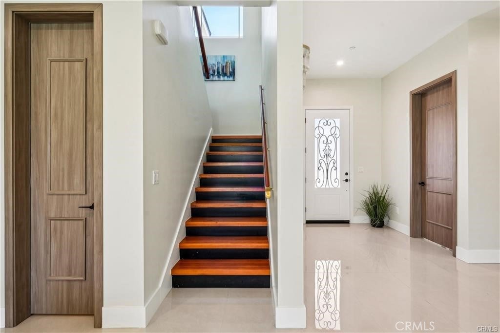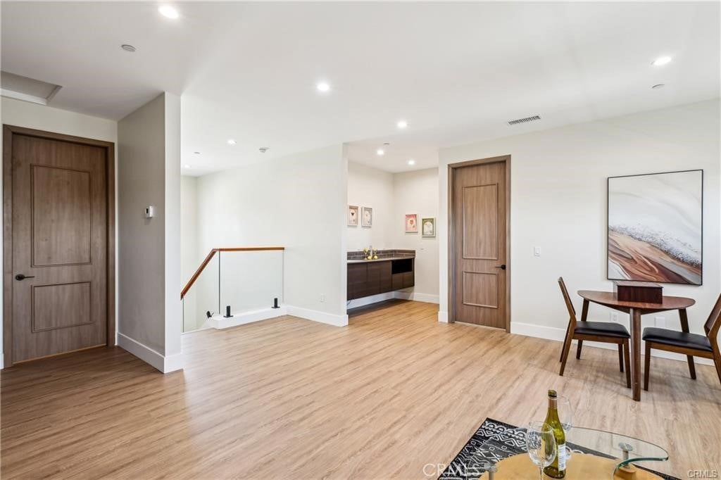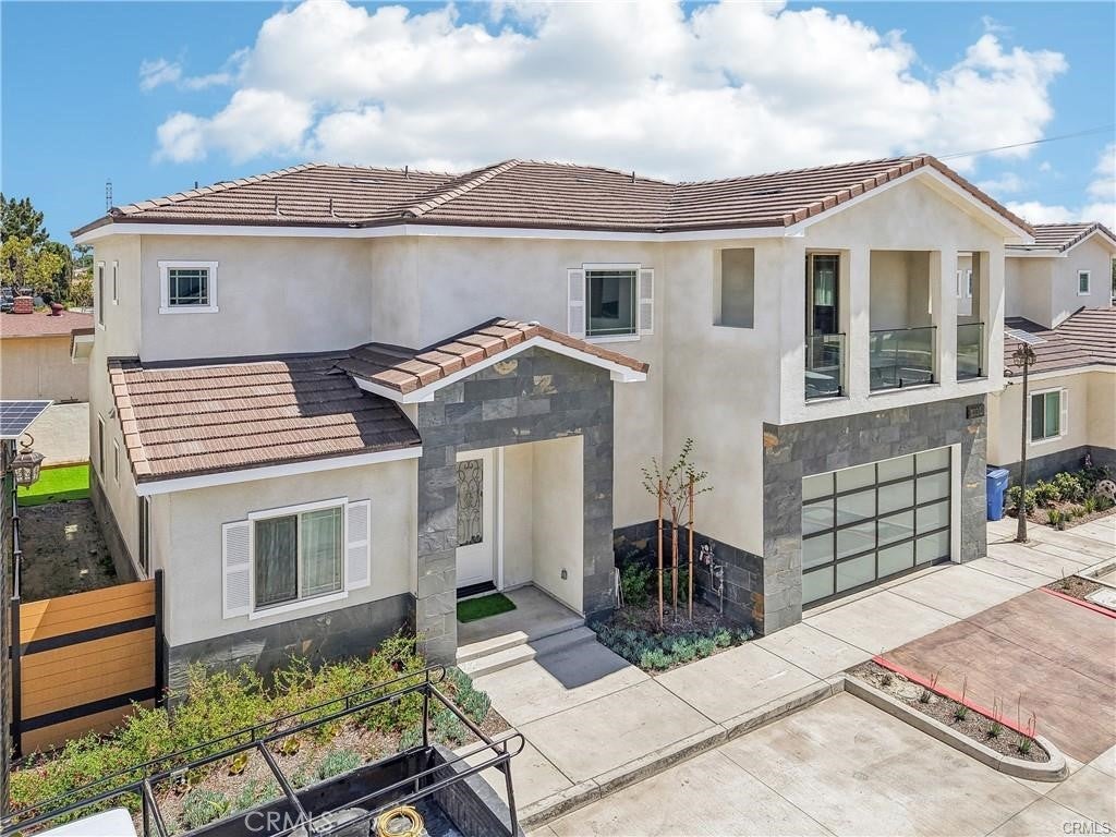 NEW CONSTRUCTION – Welcome to the largest floor plan in this exclusive 8-home community. This beautifully designed residence combines modern elegance, thoughtful functionality, and exceptional space—perfect for today’s lifestyle. From the moment you enter, you are greeted by soaring ceilings and a bright, open-concept layout that creates an immediate sense of comfort and luxury. The expansive living and dining areas flow seamlessly into the contemporary kitchen, making it ideal for both entertaining and everyday living. The kitchen showcases clean, modern finishes and brand-new stainless steel appliances, including an oven, dishwasher, and electric cooktop. Ample cabinetry and generous counter space provide both style and practicality. Upstairs, a spacious loft with its own wet bar offers a versatile retreat—perfect for a media room, game area, or private lounge for relaxing and hosting guests. This home features three generously sized bedrooms plus a bonus room currently set up as a home office, with the flexibility to easily convert into a fourth bedroom. Each bedroom includes its own spacious walk-in closet, offering abundant storage throughout. A dedicated laundry room with additional storage space adds everyday convenience. Additional highlights include a rare three-car garage, providing ample parking and storage, and leased solar panels to help enhance energy efficiency and reduce utility costs. With only eight homes in the tract and this being the largest model available, this property offers a unique opportunity to own a premier home in a private, limited community setting. Move-in ready and designed for modern living—this is new construction at its finest.