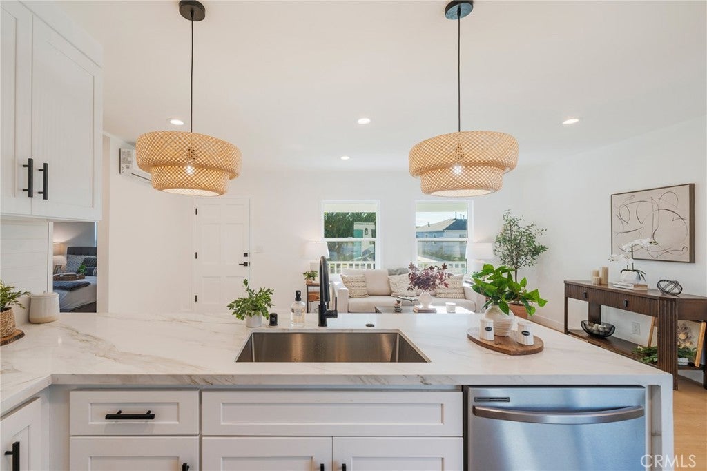Welcome to this beautifully renovated single-story home, where modern design meets luxurious comfort. Located in a highly desirable neighborhood in Southeast Torrance, CA. This charming property boasts a spacious open floor plan, three generously sized bedrooms, and premium features that elevate your living experience. Step inside through a beautiful beach-teal front door and be greeted by an inviting ambiance, enhanced by recessed lighting, new white interior paint, and premium laminate wood flooring throughout the home. This home offers a 1-car garage with an EXTRA oversized attached room that can be used as a 4th bedroom, office, or entertaining space. Brand new windows, new ductless mini-split AC/heater, and 2 full bathrooms that have been tastefully renovated with modern touches. The heart of this home is the chef-inspired kitchen, complete with gleaming quartz countertops, all-new stainless-steel appliances, shaker-style slow-close cabinetry, and a custom peninsula with a waterfall finish perfect for both cooking and entertaining. Enjoy a large and spacious backyard to host all of your special gatherings with family and friends. With its thoughtful design, premium finishes, and a fantastic layout, this home is the perfect blend of modern living and comfort. Great location with the award-winning Torrance school district, don't miss this chance to make this property your DREAM HOME!
