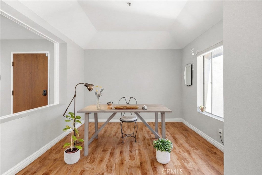 Come home to this beautifully upgraded top-corner end-unit 2-bedroom, 2-bath condo with an office in the guard-gated Windemere community in the heart of Torrance. Featuring one of the largest single-level floor plans, this bright home offers abundant natural light, laminate hardwood floors, crown molding, recessed lighting, and a remodeled kitchen with granite countertops. The primary suite includes a spa-like bathroom with dual vanities and a walk-in shower, while the office provides a perfect space for working from home. Enjoy a private balcony overlooking landscaped grounds, in-unit laundry, and a newer AC system replaced in 2019. Windemere offers resort-style amenities including 24-hour security, pools, spas, fitness center, racquetball courts, and clubhouse, just steps from Charles H. Wilson Park and its popular Farmers Market, and minutes from beaches, shopping, and dining.