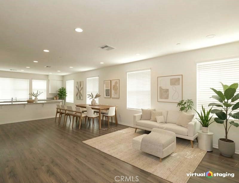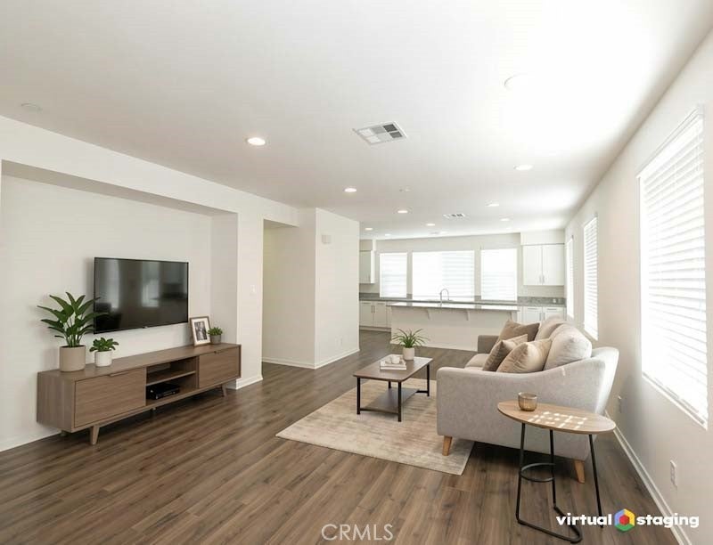 Welcome to 8276 Celestial Avenue in the gated Aldea Walk community. This beautifully maintained end-unit townhome offers 1,652 sq ft, a desirable tri-level layout, and direct access to a rare 3-car tandem garage. The open-concept great room is filled with natural light from windows throughout the home and features wood-laminate flooring and a built-in entertainment niche. The spacious kitchen includes a large center island, granite countertops, stainless steel appliances, wraparound cabinetry, and a reach-in pantry. The top level features a private primary suite with French doors leading to a private balcony, plus a walk-in closet and ensuite bath. Two additional bedrooms, a full hallway bath, and an upstairs laundry area provide comfort and convenience. Enjoy an expansive front patio and the large grass picnic area with BBQ station located directly in front of the home, with a second BBQ area also available in the community. Additional features include whole-house water-softener piping, kitchen water-filter hookups, recessed lighting, and custom window treatments. All within minutes of The Source OC, Porto’s Bakery, Knott’s Berry Farm, schools, parks, restaurants, and the 5 and 91 freeways. Move-in ready and located in one of Buena Park’s most desirable gated neighborhoods. Disclaimer: Some photos have been virtually staged to help illustrate potential furniture layout and room use.
