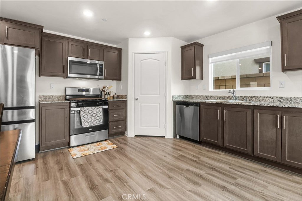 NEWER CONSTRUCTION | Bayberry Pointe – Jurupa Valley! Welcome to this stunning two-story single-family home offering approx. 1,812 sq ft, 4 bedrooms, 2.5 baths, and a spacious loft in a brand-new community. Enjoy an open-concept layout with a welcoming front porch, large Great Room, and an entertainer’s Kitchen & Dining area. The gourmet kitchen features stainless-steel appliances, granite countertops, beautiful cabinetry, a corner pantry, and a large center island for prep and seating. Upstairs you’ll find the oversized loft, three generous secondary bedrooms, a convenient laundry room, and a secondary bath with dual sinks. The expansive primary suite includes a walk-in shower and a large walk-in closet. Additional highlights include America’s Smart Home Technology, LED recessed lighting, and more. Set on an approx. 4,441 sq ft lot, the home offers a large backyard plus valuable upgrades: Samsung front-load washer & dryer, Samsung double-door refrigerator, custom faux-wood shutters, whole-house water softener, backyard concrete slab, and artificial turf with widened driveway in the front yard.