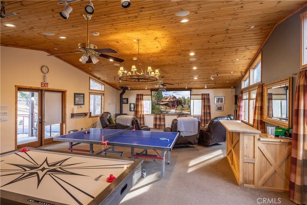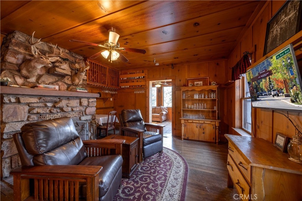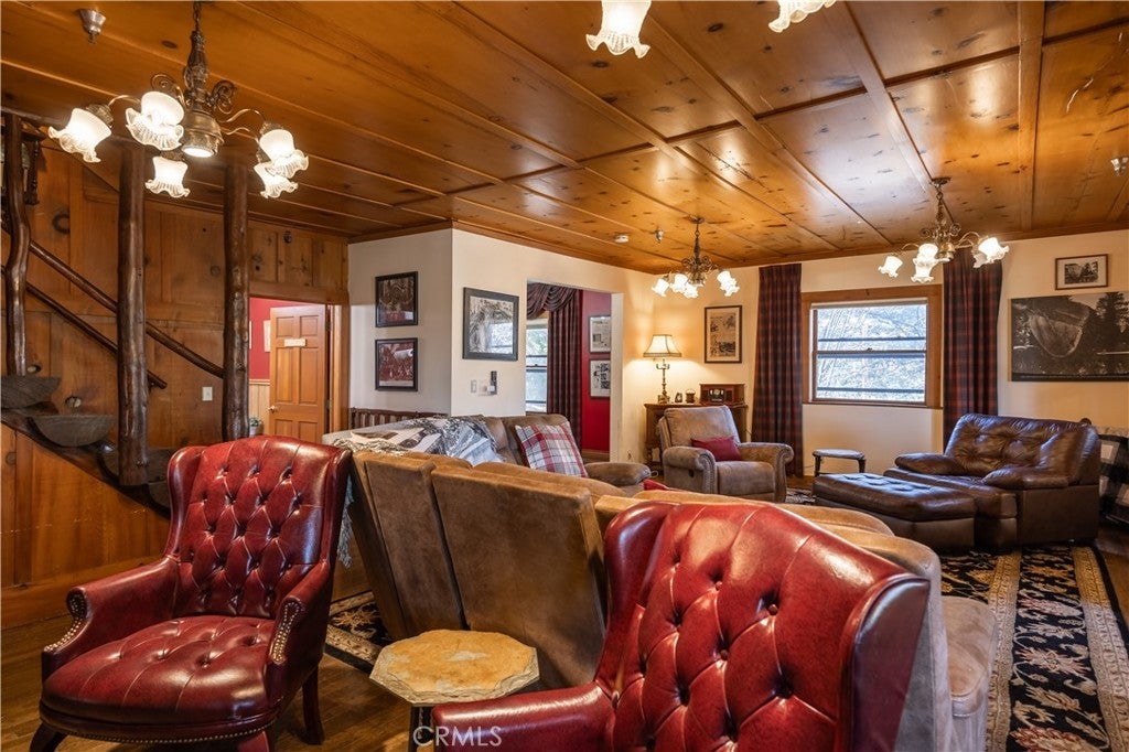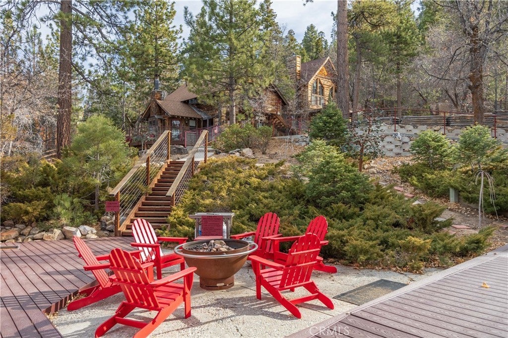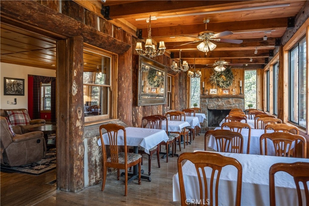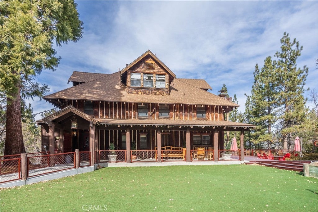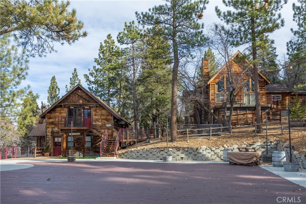 Welcome to the Knickerbocker Mansion, an iconic estate nestled in the heart of Big Bear Lake, offering an unparalleled retreat experience and endless possibilities for the new owner. This venue could be used as a boutique hotel, wedding venue or corporate retreat just to name a few. Spanning an impressive 9,802 square feet on a sprawling 2.24-acre lot, this historic property, built in 1920, is a testament to timeless elegance and versatility. Originally constructed for Big Bear's Dam-Keeper, William Knickerbocker, the mansion exudes charm with its vertical-log architecture. The estate comprises three distinct residences: The Mansion, The Residence, and The Carriage House. Together, they offer a total of 14 master suites and 15 master bathrooms. The Mansion features five bedrooms, a commercial kitchen, a grand formal dining room with a fireplace, and a cozy living room adorned with a massive rock fireplace. The expansive basement is perfect for a game room or wine cellar. The Residence boasts three bedrooms, an open kitchen, a dining area with a breakfast bar, and a private spa. The Carriage House offers six bedrooms and an additional outdoor spa, ideal for guests seeking privacy and relaxation. Additional amenities include a guest house, a three-car garage, a conference building, and ample parking for 30 vehicles. Adjacent to the National Forest and within walking distance to the Village and Lake, the Knickerbocker Mansion is a rare gem, offering breathtaking views and a serene escape.