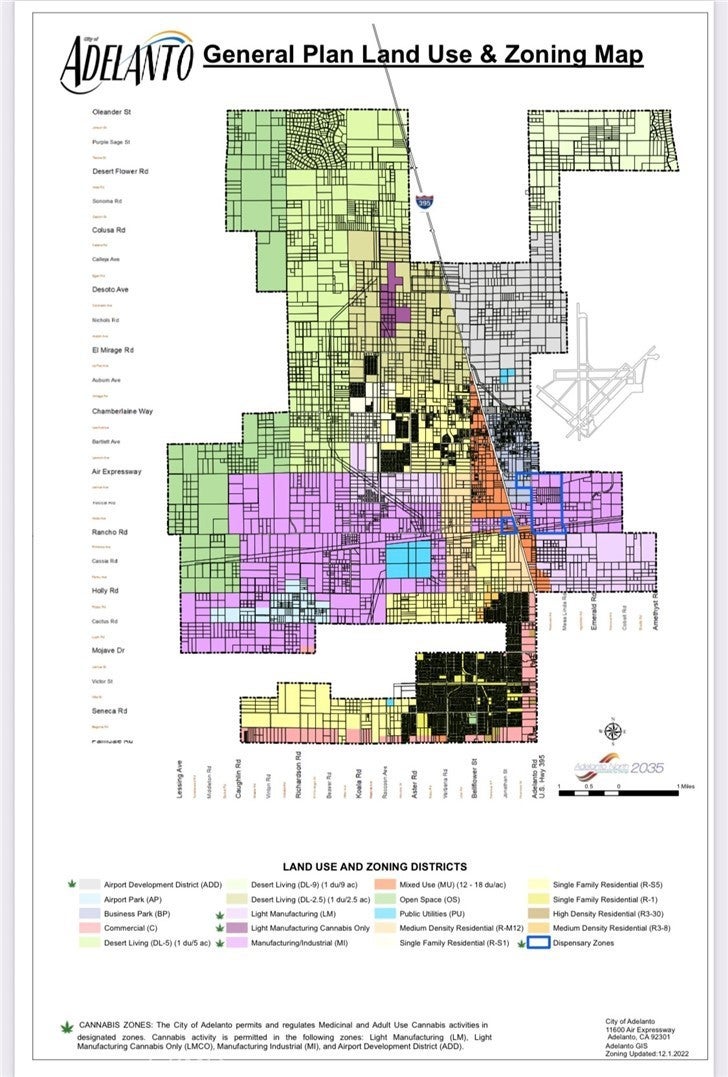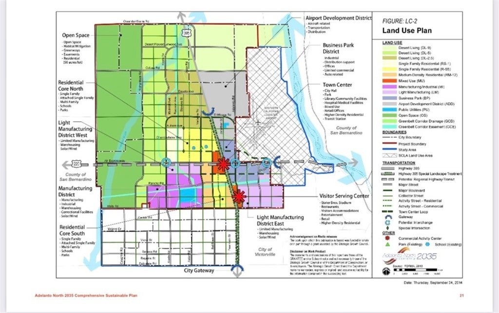 Welcome to the future of urban development in Adelanto! This vacant lot is more than just unused space; it is the blank canvas upon which Adelanto's vision takes shape. At the core of the long-term Land Use and Community Design plan, a bustling mixed-use center is projected to redefine modern desert living. Imagine a vibrant urban center where sustainability is the norm and innovation is the standard. The focus is on desert-sensitive design, harnessing the natural beauty of our region while creating a thriving and livable environment for generations to come. From business districts and employment centers to complete streets designed for walking, bicycling, and transit systems, they are committed to a holistic approach to mobility and accessibility. A winding trail system will connect neighborhoods and accessible parks on every corner, promoting an active and communal lifestyle. The value of water conservation and intelligent natural resource management. From water conservation to using renewable energy, such as solar and wind power, we strive to be leaders in sustainable and environmentally friendly practices. This project is more than just development; it is a commitment to community, with gathering spaces and parks in every neighborhood where people can connect, share, and thrive together.