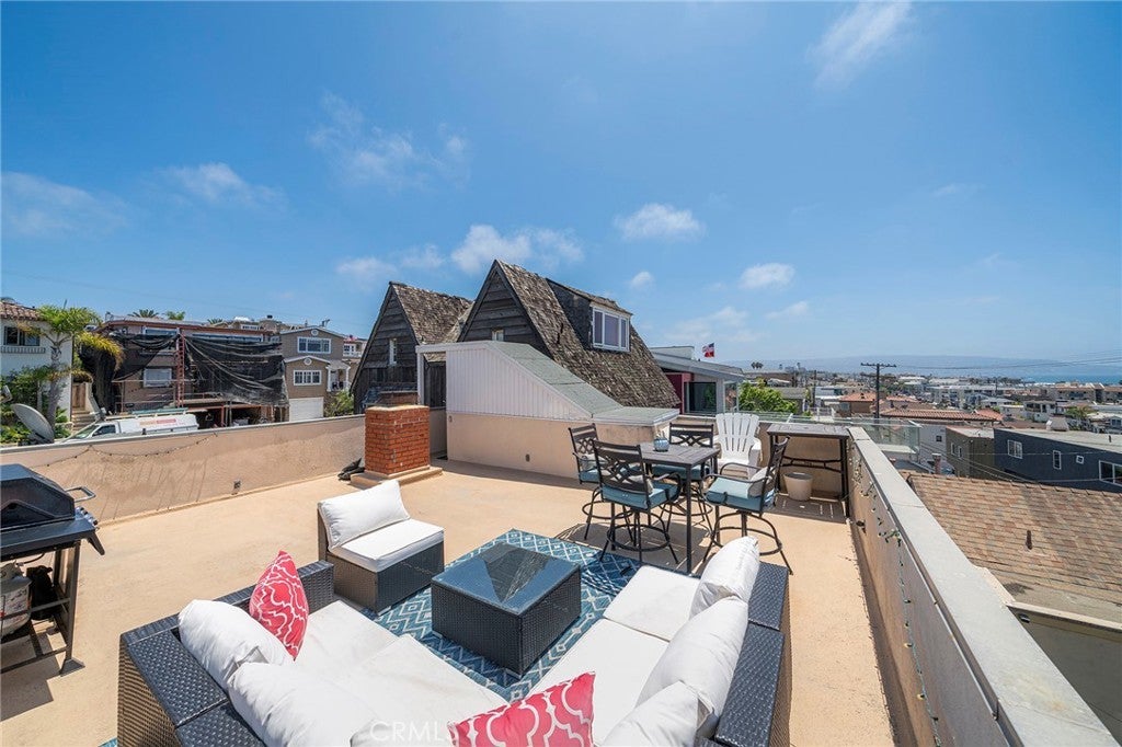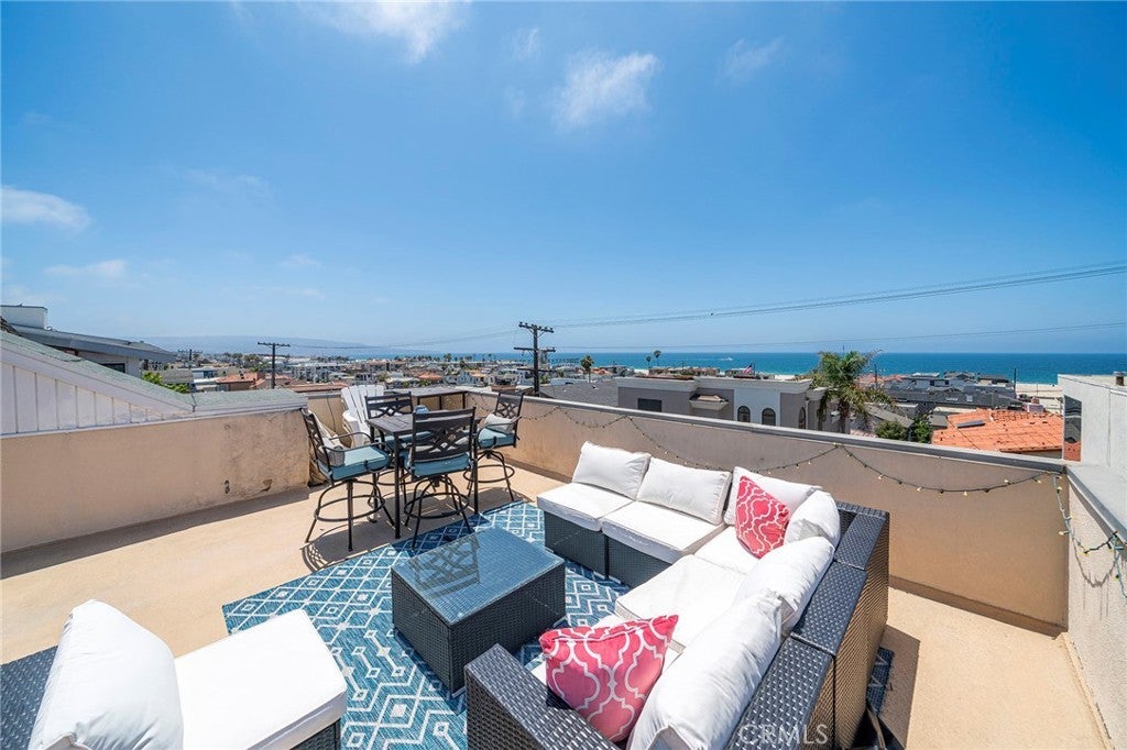 Discover the epitome of beachside luxury in this stunning furnished vacation rental, available this August, in the heart of Hermosa Beach. Imagine waking up to breathtaking ocean views, visible not only from within but also from the expansive rooftop deck. Picture yourself soaking in the sun and scenery, from Palos Verdes/Catalina to Malibu and beyond, on new, chic outdoor furniture designed for maximum comfort and style. This exquisite home is perfectly positioned in the prestigious North Hermosa Sand Section, merely two blocks from the shimmering ocean and within a pleasant stroll to the vibrant downtown. Offering a spacious layout, this apartment features two generously sized bedrooms, Split air-conditioing, a full bathroom, and a three-quarter bath, ensuring ample space for relaxation and privacy. Unique to this property, the only shared wall is the floor, providing an unparalleled sense of seclusion. Plus, you'll enjoy the convenience of first-floor entry with all the benefits of elevated living. Recent renovations have elevated this home's allure, showcasing a modern kitchen, sleek bathrooms, and luxurious beachwood-look flooring throughout. Enhanced with new canned lighting, every detail has been carefully curated to create a warm and inviting ambiance. This is more than just a vacation rental; it's a chance to live in a slice of paradise. Summer 2024 rates range from $8,000 to $12,000, varying by month. Don't miss this unparalleled opportunity to experience the best of Hermosa Beach in a vacation home that exceeds every expectation.