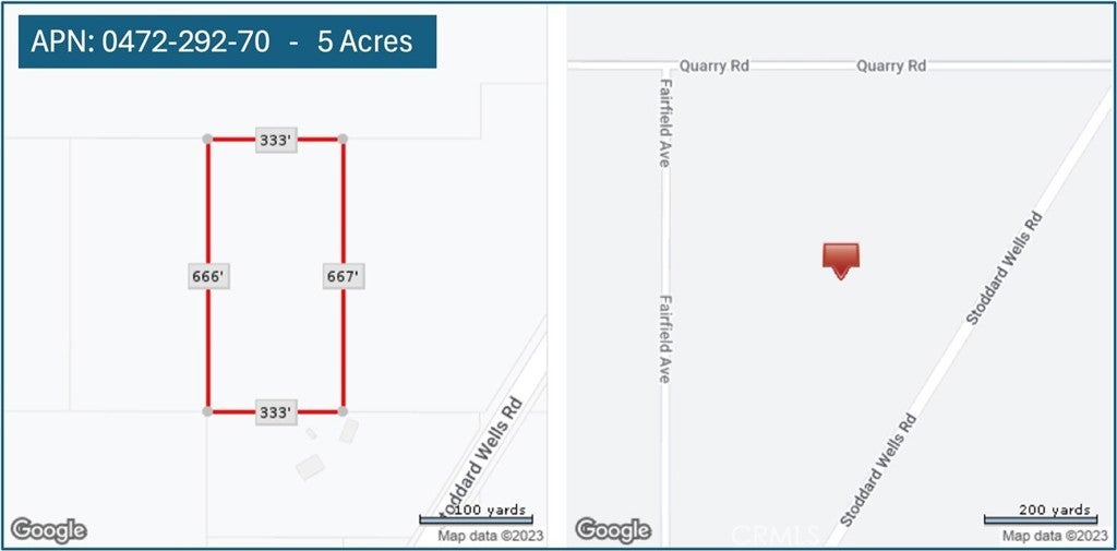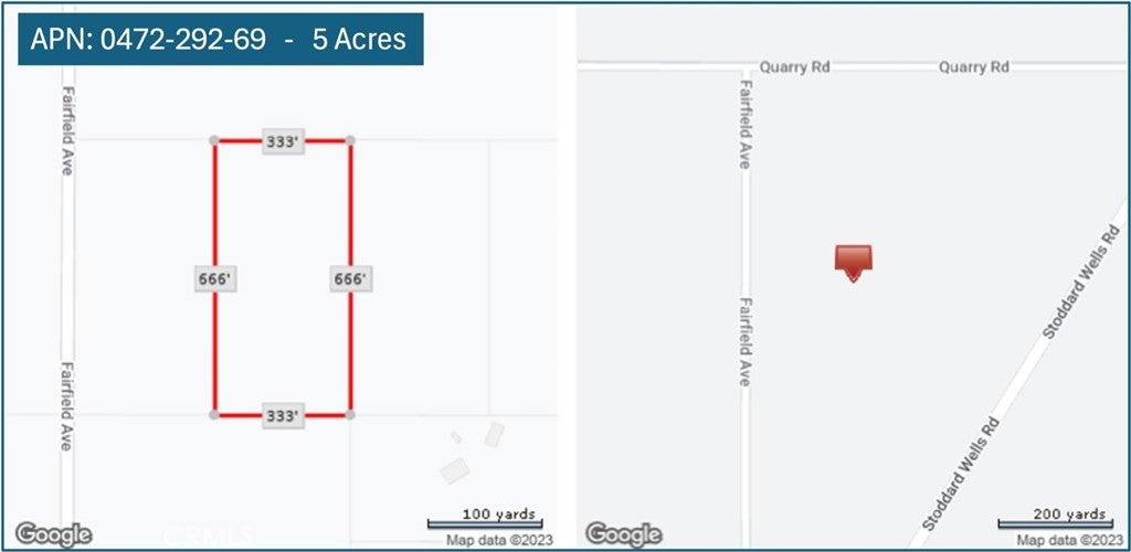 Seize a prime investment opportunity in Apple Valley with this 25-acre lot located between Stoddard Wells Rd, Quarry Rd, and Fairfield Ave, setting a seamless foundation for your vision. Positioned about 2.6 miles from the future Brightline High Speed Rail Station and near Highway 15 & Walmart Distribution Center, this listing promises significant growth potential in a town poised for transformation. Ideal for investors looking to capitalize on Apple Valley's expansion, this lot offers visibility, accessibility, and the promise of appreciation. Here, the opportunity to shape the future of a burgeoning community awaits. Invest in a parcel that stands at the crossroads of progress and potential in Apple Valley.