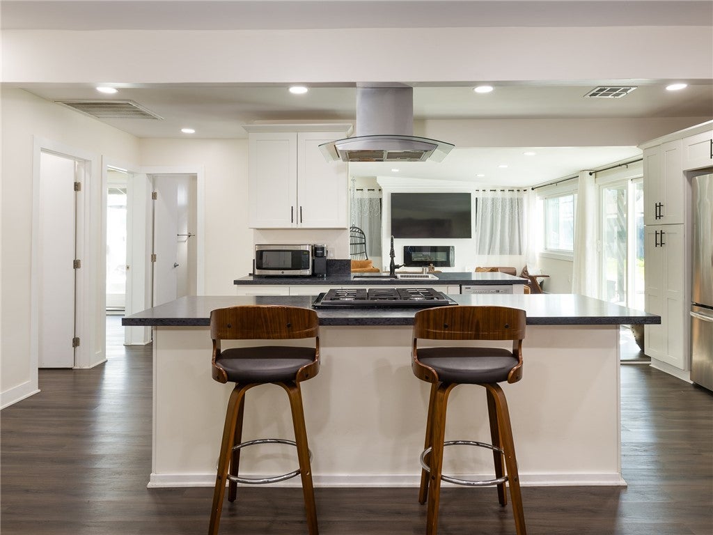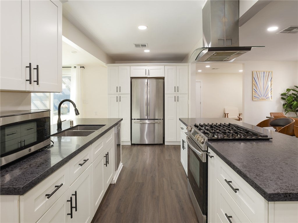 Welcome to 5518 W 117th St, Hawthorne, a beautifully updated 4 bed, 2 bath home sitting on an incredible 10,000+ sqft lot with modern amenities, including AC, heat, and solar panels for energy efficiency. As you enter, you’re greeted by a sleek kitchen featuring a spacious island and a charming dining area. To the left, you'll find two cozy bedrooms, one with sliding doors leading to the backyard, as well as a full bathroom. On the right, there's a comfortable seating area, another full bathroom, and a third bedroom. Conveniently, the laundry room is also nearby. Through the kitchen, the open-concept living room offers abundant natural light with large windows and a slider that leads to the expansive backyard, perfect for entertaining. Situated on a massive lot, the property also includes a two-car detached garage and recessed lighting throughout, making this home both stylish and functional.