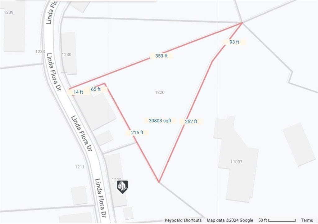 Experience this 30,811 sq ft vacant lot of vast canyon located off of Linda Flora Drive in Bel Air! Triangular land with an approximate 15 ft frontage from the street & public access. The parcel is downsloped with an exclusive enclave setup surrounded by prestigious residences.