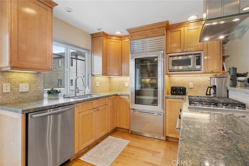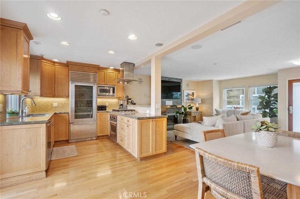 Welcome to this fabulous, fully furnished Hermosa Sand Section home just steps to the beach, shops, restaurants, and the Hermosa Pier. Remodeled and updated, this home looks like a beachy postcard and is a joy to live in: light, bright townhome has three levels, two large bedrooms, and two and a half bathrooms with a large open family room with ocean views from the kitchen, balcony, and bedroom. This home boasts a big, sunny, west-facing balcony deck to enjoy the ocean breeze and spectacular sunsets. There is a large, private two-car, attached garage with a laundry area. Amenities include a front patio, en-suite bathrooms, off-street private entrance, high-end kitchen appliances such as a Sub-Zero fridge and wine fridge, Viking oven/range, Bosch dishwasher, and a built-in microwave. The home features modern, double-paned windows, a brand new roof, an AV system with built-in speakers, two decks, and two shared, off-street, guest parking spots. Start living the beach life and find out what Hermosa is all about!! To Live, Live by the Sea!
