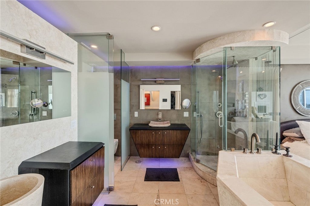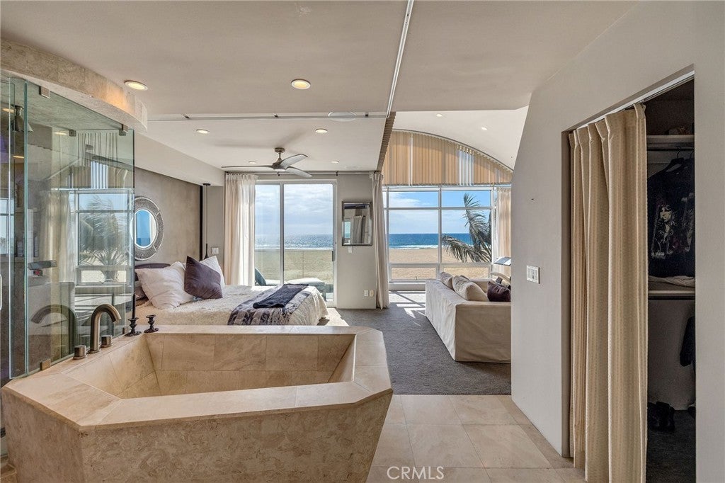 This custom designed modern home is truly one of a kind, with every detail perfectly thought out. Ocean views abound with the perfect indoor / outdoor main floor living space, easy to take care of concrete floors, 450 square foot rooftop deck with a private hot tub and sprawling sun bathing area, front patio with fire-pit, and even ocean views while you enjoy your morning shower. Located a couple blocks from Martha's and The Bottle Inn, between Hermosa and Manhattan Beach Piers. $42,500/month during June, July and August.