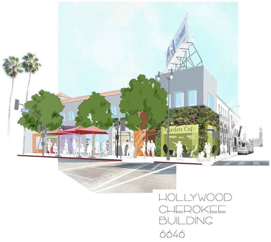 Hollywood's Premier Landmark Building The Cherokee Building has been a Hollywood landmark since its original construction in 1927 and is famous for being one of Hollywood’s first major retail buildings with an interior motor court. Located in the heart of Hollywood, 3 blocks east of Hollywood Blvd. and Highland Ave. and 4 blocks west of Vine St. The Cherokee Building offers an investor a rare and unique opportunity to acquire a trophy property with an unparalleled 121 feet of frontage along Hollywood Blvd. The Cherokee Building presents an opportunity for a qualified investor to purchase a rare asset with both significant upside rental, appreciation, and extraordinary future development. J.C. Amber clothier provided decades of custom designs, tailoring, outfitting and clothing to Hollywood’s most famous entertainers, movies stars and musicians. The Cherokee Building is also home to Hollywood’s oldest and most famous Bar. Rich in Hollywood legacy spanning decades and decades of lore, legend and history. Located in the heart of Hollywood 3 blocks east of Highland Ave. and four blocks west of Vine St. On a signaled corned in the core of Hollywood Boulevard’s booming tourist market, surrounded by office buildings, high end restaurants, retail, night clubs, and new residential and commercial developments. One of Hollywood’s most highly traveled thoroughfares averaging almost 14,000 cars per hour! The Cherokee Building not only benefits from the incredible exposure and visibility Hollywood Blvd offers, but also the fantastic walking traffic generated by the millions of tourists who visit Hollywood every year. Near Gene Autry’s and James Caan’s stars along the famous Hollywood Boulevard Walk of Fame. Stop number 34 on Hollywood’s walking tour. This structure is another fine example of the Spanish Colonial Revival Style building on Hollywood Boulevard. Norman W. Alpaugh was a Canadian Architect who moved to Los Angeles; he also designed buildings in New York. The delicacy of the grillwork and Moorish detail give this building a warmth and attractiveness that is unsurpassed. The enclosed interior courtyard with tiled fountain captures the romantic feeling of Spain, and is unusual for commercial buildings in Hollywood. Designed around a parking lot, with an elaborate rear entrance, this structure is one of the earliest structures in Hollywood (possibly Los Angeles) to be oriented around the automobile, predating Bullock’s Wilshire similar treatment”