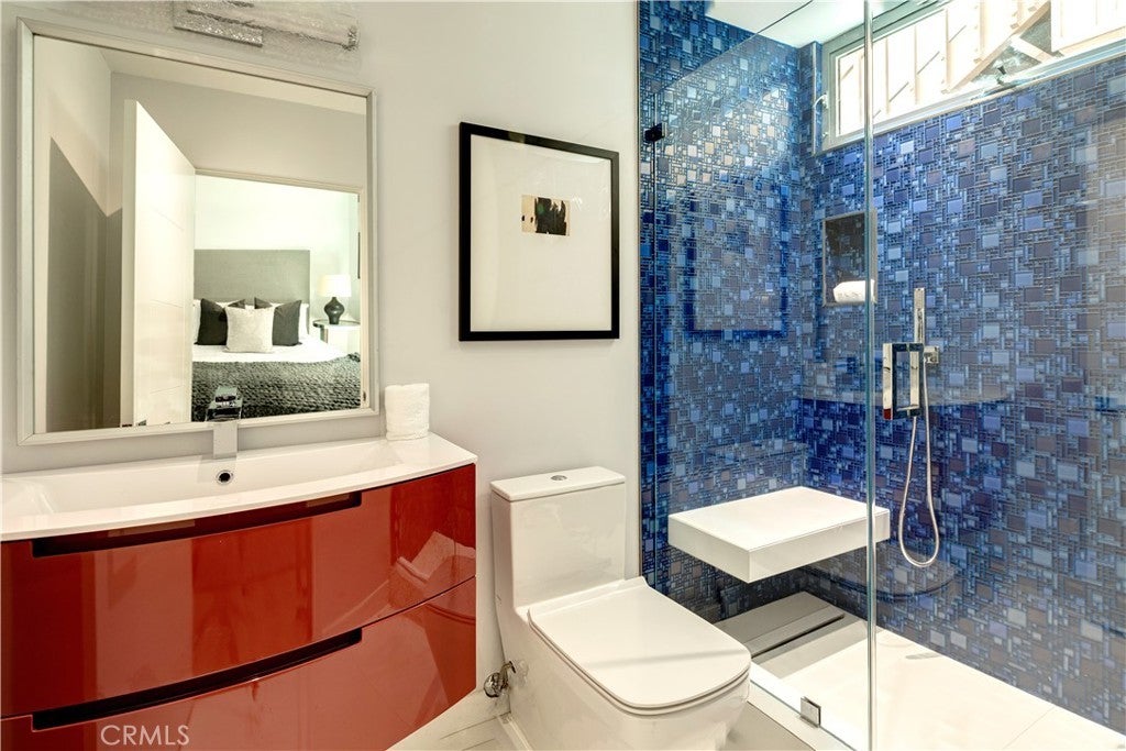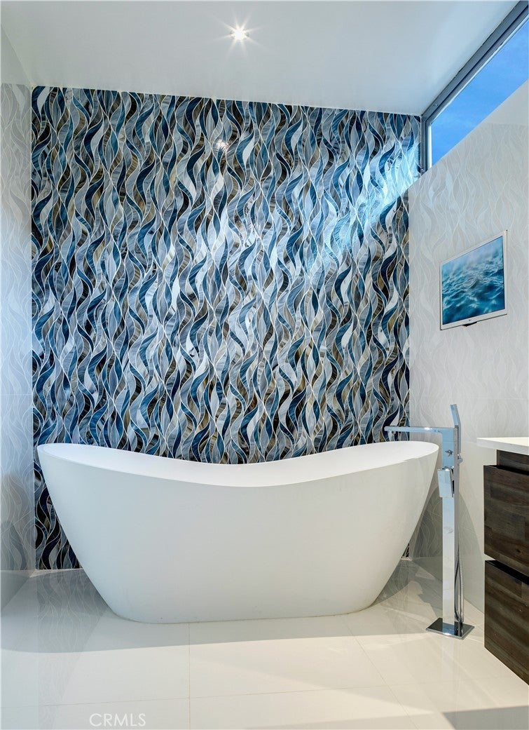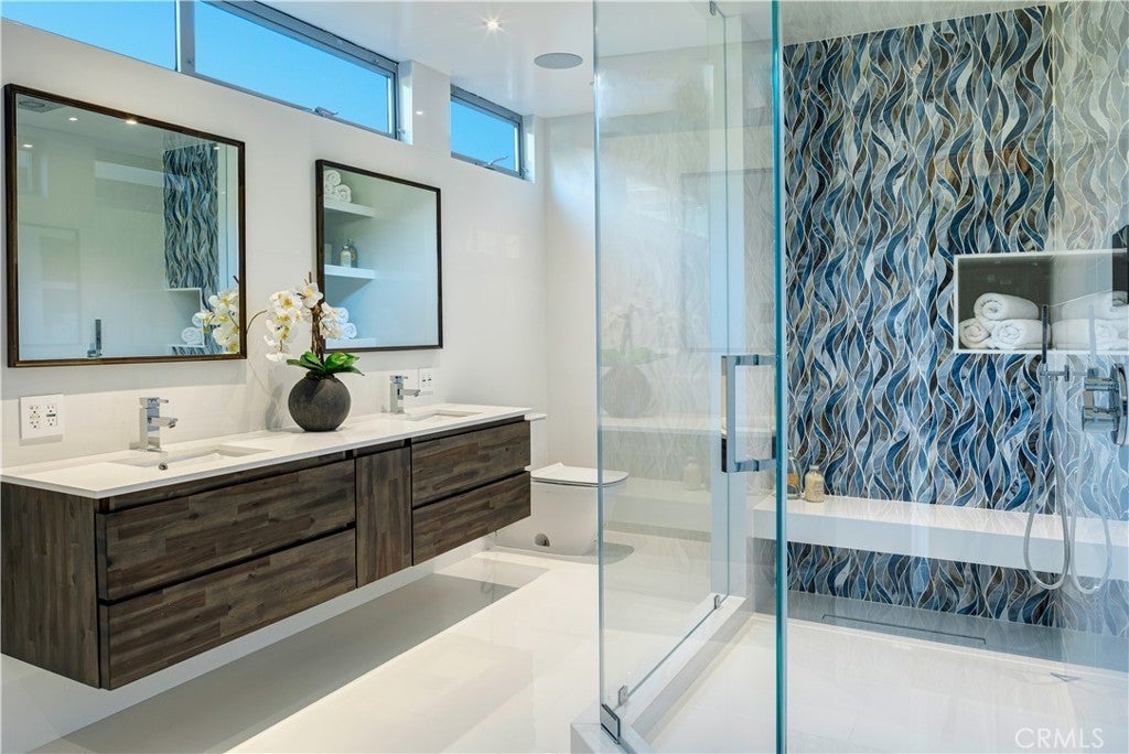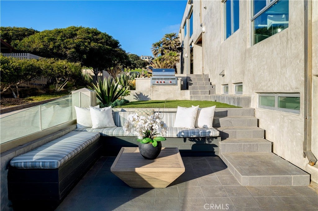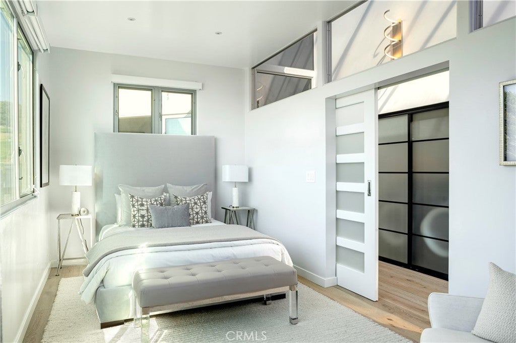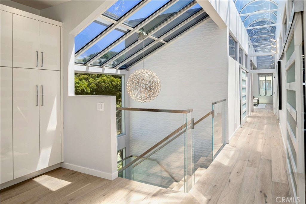 Experience the apex of Strand living at this ocean front Manhattan Beach property. For sale in one of the best spots in town, this striking contemporary penthouse residence, approx 2,740 sq ft, is where you can ponder uplifting panoramas of coastline, ocean and sky from one of 3 private decks, or step outdoors to surf and swim in the waves. This 3-bedroom, 4-bathroom Manhattan Beach Townhome is one of two at this prized corner address, where you enjoy an extra 105 feet of ocean views along the north-facing walk street—a rare property for sale. This Manhattan Beach Strand home was taken down to the studs for a total style and tech refresh. The result is a 2-level designer home where you wake in a fireplace master suite, checking surf from your bedroom patio before stepping into a 73-inch soaking tub or ThermaSol steam shower, with aromatherapy, lighting and sound controlled on iPad or smartphone. So is everything else in this smart home, from security and blinds to temperature, lights and music—even the Thermador oven. Walk down the hall to the sun-splashed living room and kitchen, where stunning ocean views are framed by French white oak floors and porcelain tiles. Enjoy breakfast in a chic kitchen filled with white Italian cabinetry and Thermador appliances before stepping onto the deck to savor Pacific Ocean breezes. The flow of the home is easygoing and sunlit, with an extra bedroom and bathroom on the lower level that’s ideal for guests or use as an office. This Manhattan Beach home caters to a versatile lifestyle, where quiet days can be spent working and enjoying the beach lifestyle, or entertaining friends over vivid sunsets on the deck and favorite vintages in the 450-bottle wine room gilded with Italian glass. At this central location, you can leave your car in the garage and cycle 5 minutes along the Strand to reach Downtown shopping and dining, or stroll 10 minutes to yoga or lunch at a sidewalk cafe in the charming North End.