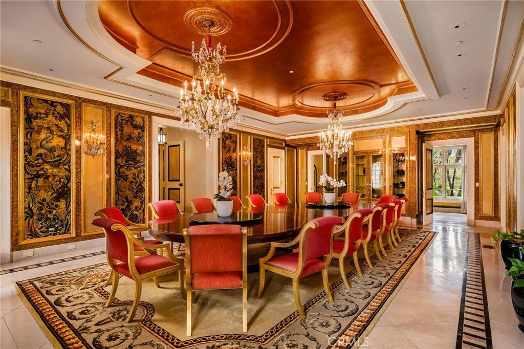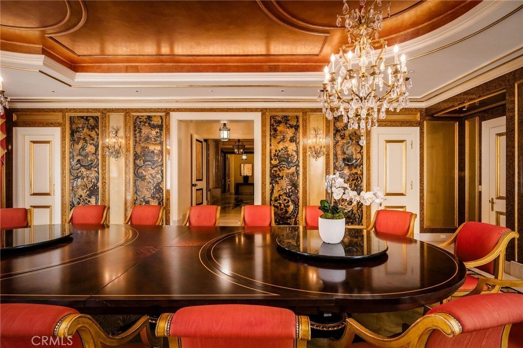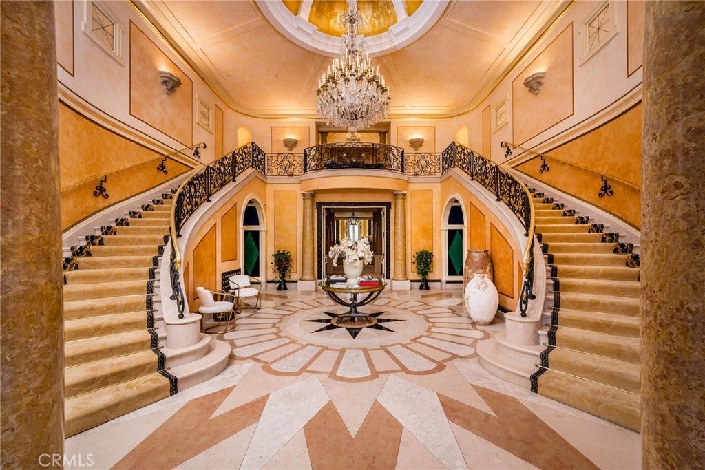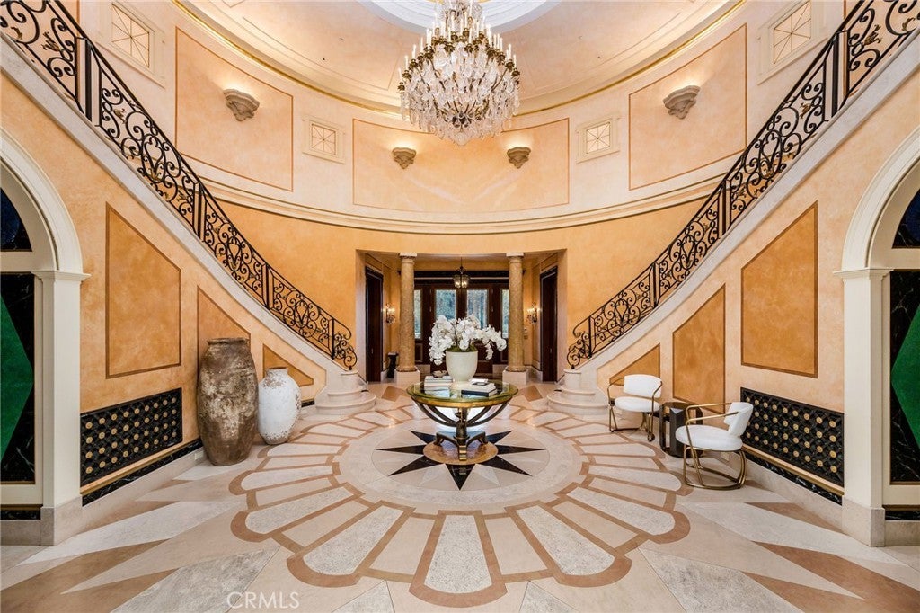 East Meets West Elegance Designed with Feng Shui principles inside and out, this spectacular 34,143 square-foot residence spans two stories of exceptional living, entertaining and recreational spaces, including 12 bedrooms and 19 baths and extravagant grounds with koi pond, multiple entertaining areas, a resort-sized swimming pool and tennis court. Drama meets detail upon entrance to the home, its soaring double-staircase foyer, flanked by sumptuous private offices, setting the tone for a grand interior of drama of lavish marble, Feng Shui motifs, rich mahogany and metallic-gold accents alongside six fireplaces, floor-to-ceiling French doors, stately stone columns, ravishing chandeliers and intricate architectural ceilings throughout. The primary suite with fireplace defines sublime with two sitting areas, a drink station, lounge room with corner desk and his and her private offices, along with an elaborate spa bath featuring a massive marble soaking bathtub, dual vanities and sinks, in addition to a sauna, steam shower, and workout area, plus five walk-in closet rooms. A stunning fireplaced formal living room, wrapped in glass with an adjacent service bar, complements the opulent formal dining room with seating for 16-plus. A statement in rich red hues, the gourmet kitchen with butler’s pantry/prep kitchen gleams supreme, highlighting two giant islands with four sinks, extensive Thermador professional appliances, a Gaggeneau electric oven, indoor grill, Sub-Zero fridges and more. Along with a rec room with sunken bar, lounge area and adjacent movie theater room are basement-level luxuries including a two-lane bowling alley, dojo, gym and sophisticated nightclub with bar seating and sound-equipped DJ booth. An orchestra mezzanine, beauty salon, private telephone booth, coat closet, housekeeper’s area, and house manager’s office, plus two elevators and an eight-car garage round out the amenities. Manned by a security gate and unparallel in privacy and appointments, this property is an opportunity of truly grand proportions.
