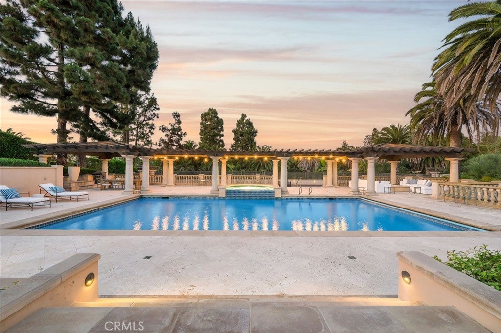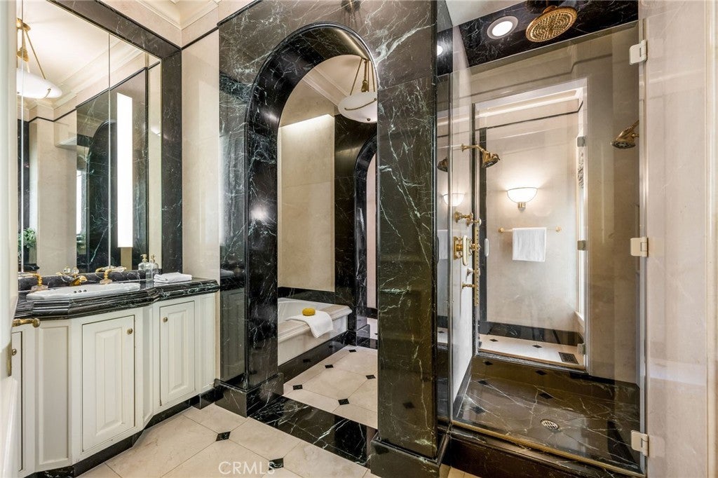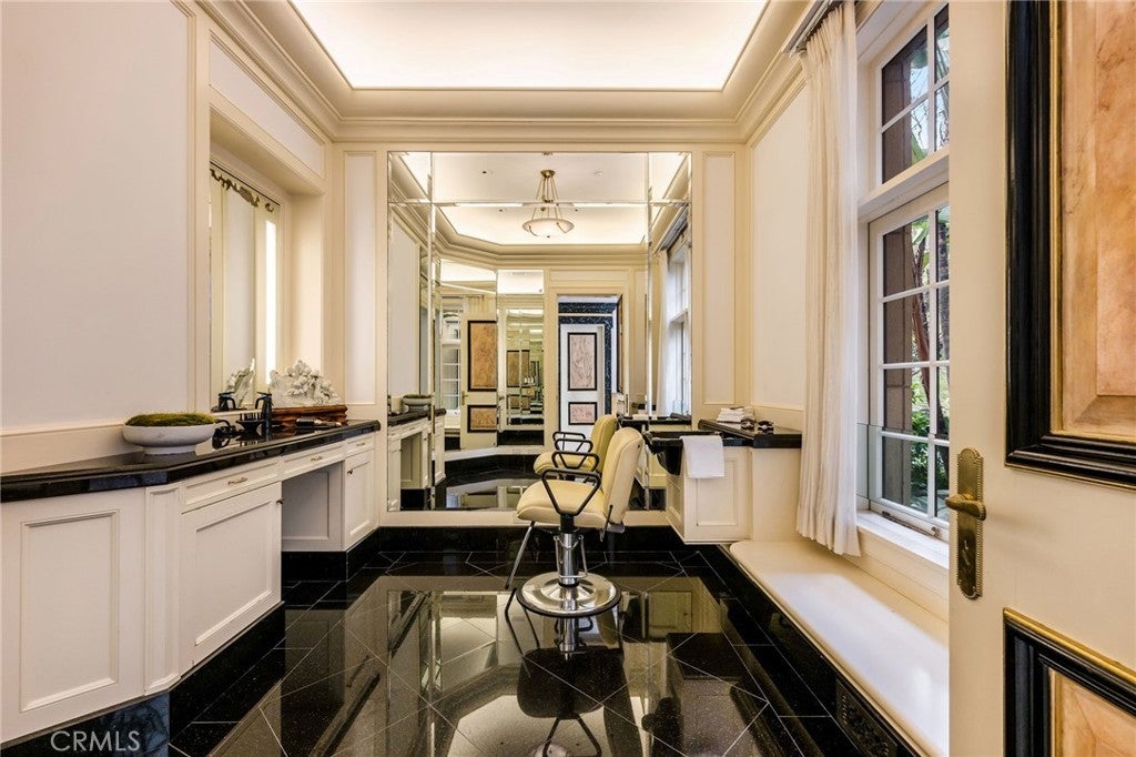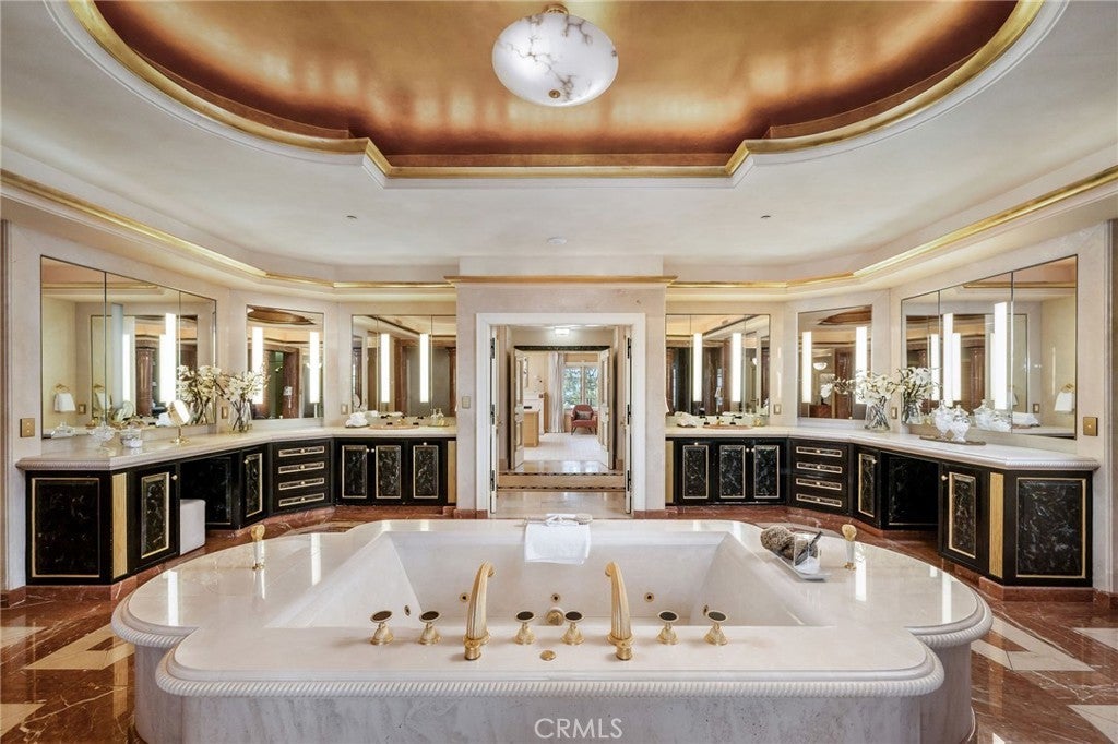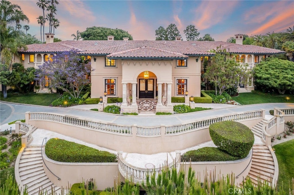East Meets West Elegance Designed with Feng Shui principles inside and out, this spectacular 34,143 square-foot residence spans two stories of exceptional living, entertaining and recreational spaces, including 12 bedrooms and 19 baths and extravagant grounds with koi pond, multiple entertaining areas, a resort-sized swimming pool and tennis court. Drama meets detail upon entrance to the home, its soaring double-staircase foyer, flanked by sumptuous private offices, setting the tone for a grand interior of drama of lavish marble, Feng Shui motifs, rich mahogany and metallic-gold accents alongside six fireplaces, floor-to-ceiling French doors, stately stone columns, ravishing chandeliers and intricate architectural ceilings throughout. The primary suite with fireplace defines sublime with two sitting areas, a drink station, lounge room with corner desk and his and her private offices, along with an elaborate spa bath featuring a massive marble soaking bathtub, dual vanities and sinks, in addition to a sauna, steam shower, and workout area, plus five walk-in closet rooms. A stunning fireplaced formal living room, wrapped in glass with an adjacent service bar, complements the opulent formal dining room with seating for 16-plus. A statement in rich red hues, the gourmet kitchen with butler’s pantry/prep kitchen gleams supreme, highlighting two giant islands with four sinks, extensive Thermador professional appliances, a Gaggeneau electric oven, indoor grill, Sub-Zero fridges and more. Along with a rec room with sunken bar, lounge area and adjacent movie theater room are basement-level luxuries including a two-lane bowling alley, dojo, gym and sophisticated nightclub with bar seating and sound-equipped DJ booth. An orchestra mezzanine, beauty salon, private telephone booth, coat closet, housekeeper’s area, and house manager’s office, plus two elevators and an eight-car garage round out the amenities. Manned by a security gate and unparallel in privacy and appointments, this property is an opportunity of truly grand proportions.