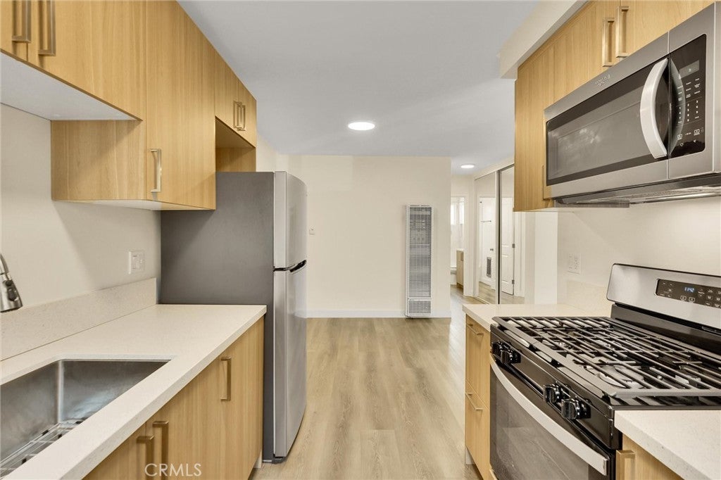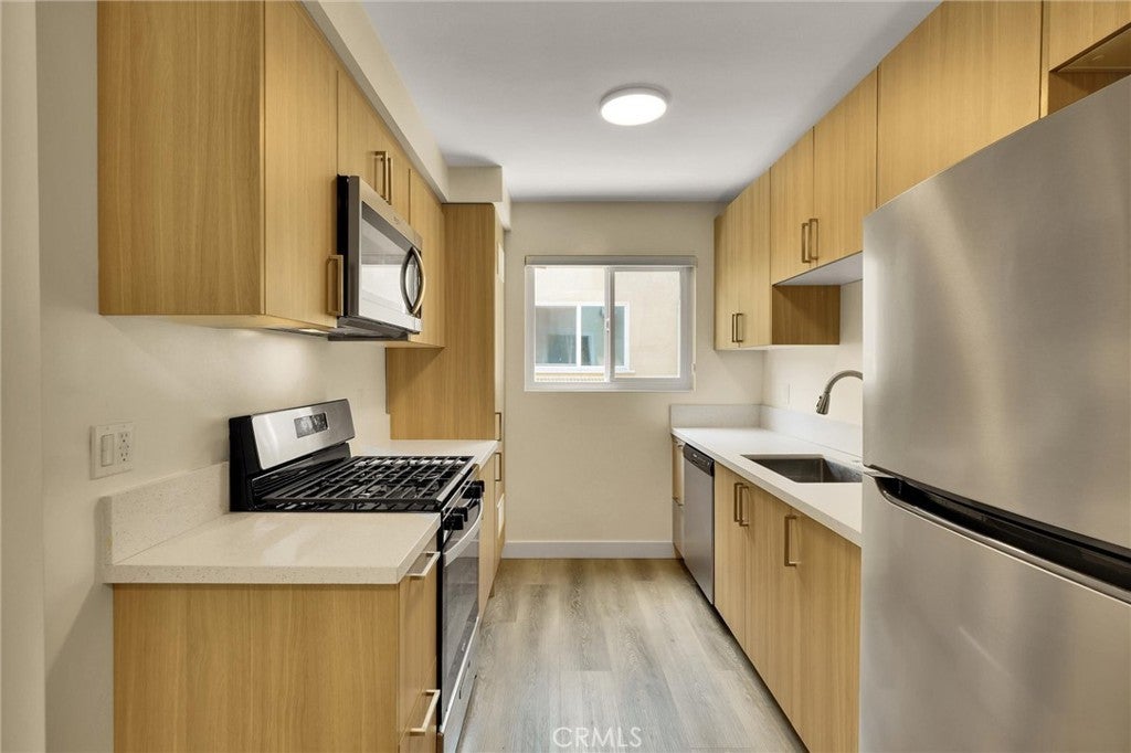 One Month Free Rent! Limited-time move-in special — receive your first month’s rent free with a 12-month lease agreement.Bright & Renovated 1BR in Prime Hancock Park Area Welcome to Unit #5 at 612 N Sycamore Ave – a beautifully updated 1-bedroom, 1-bathroom apartment in the heart of Hancock Park/Wilshire! This spacious 720 sq ft unit features fresh paint, luxury vinyl plank flooring, and abundant natural light throughout. The expansive living room flows seamlessly into a modern kitchen equipped with sleek countertops, updated cabinetry, and stainless steel appliances. Enjoy a large bedroom with ample closet space and a stylish bathroom with marble-style tile and modern fixtures. The unit also includes on-site laundry. Located on a quiet, tree-lined street, yet just minutes away from Melrose Ave, The Grove, and Larchmont Village, this is urban living with a touch of tranquility. There is no parking on site, but you can apply for District Permits for $34 for a year.