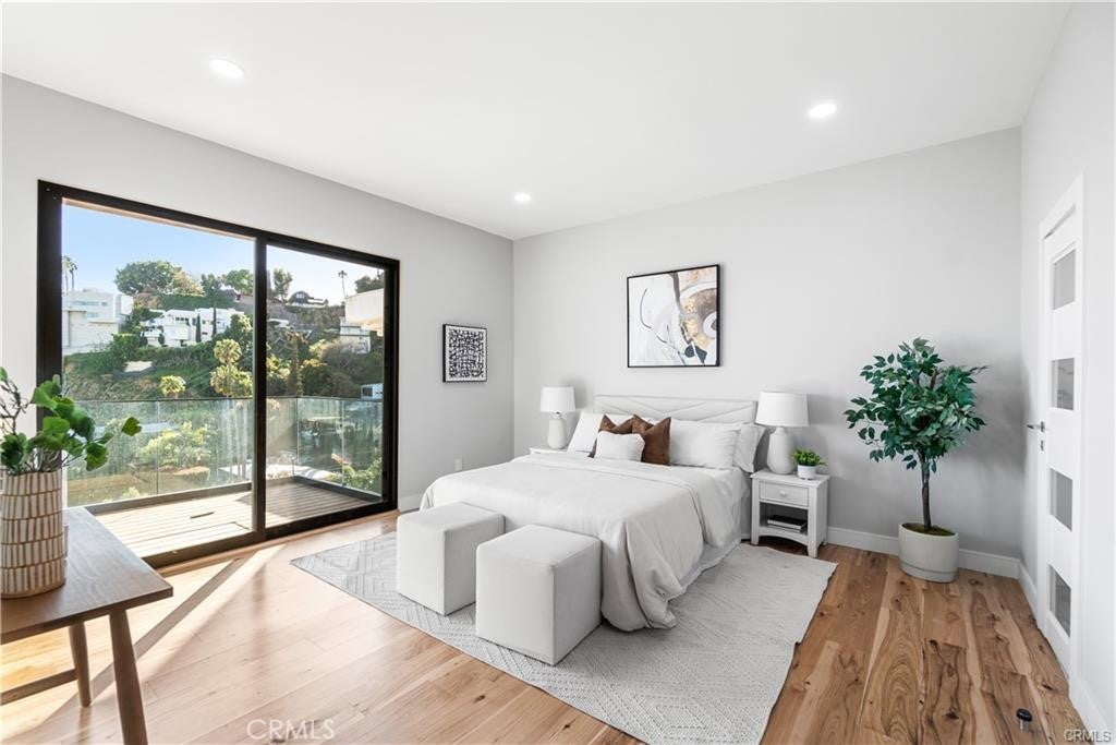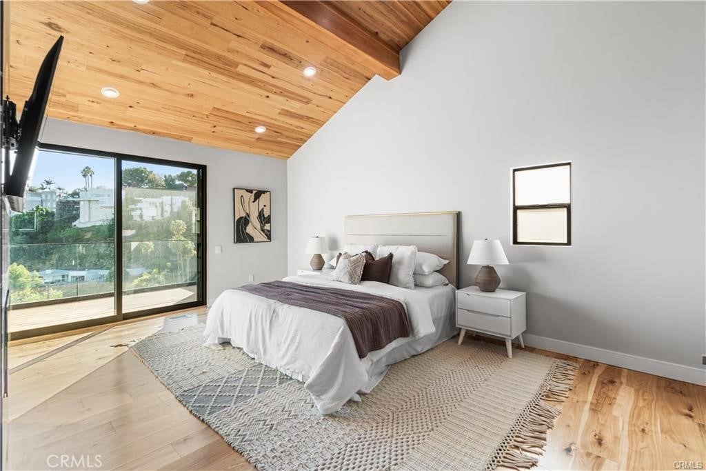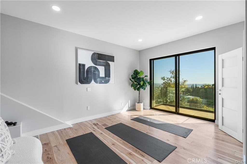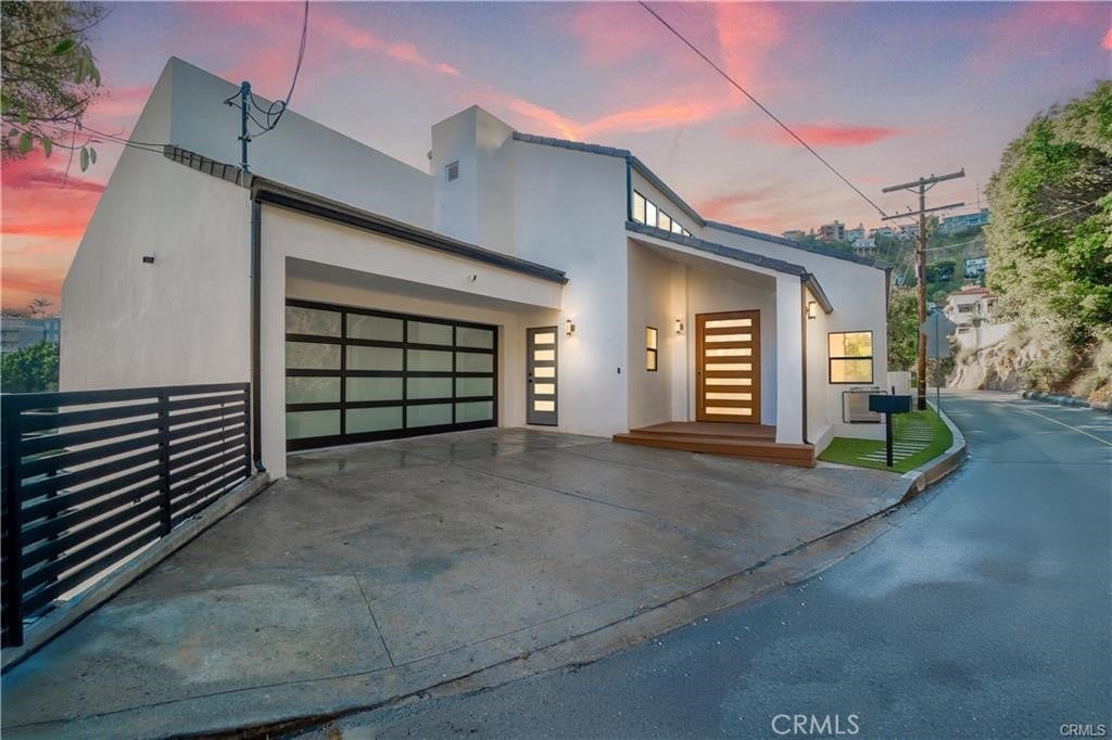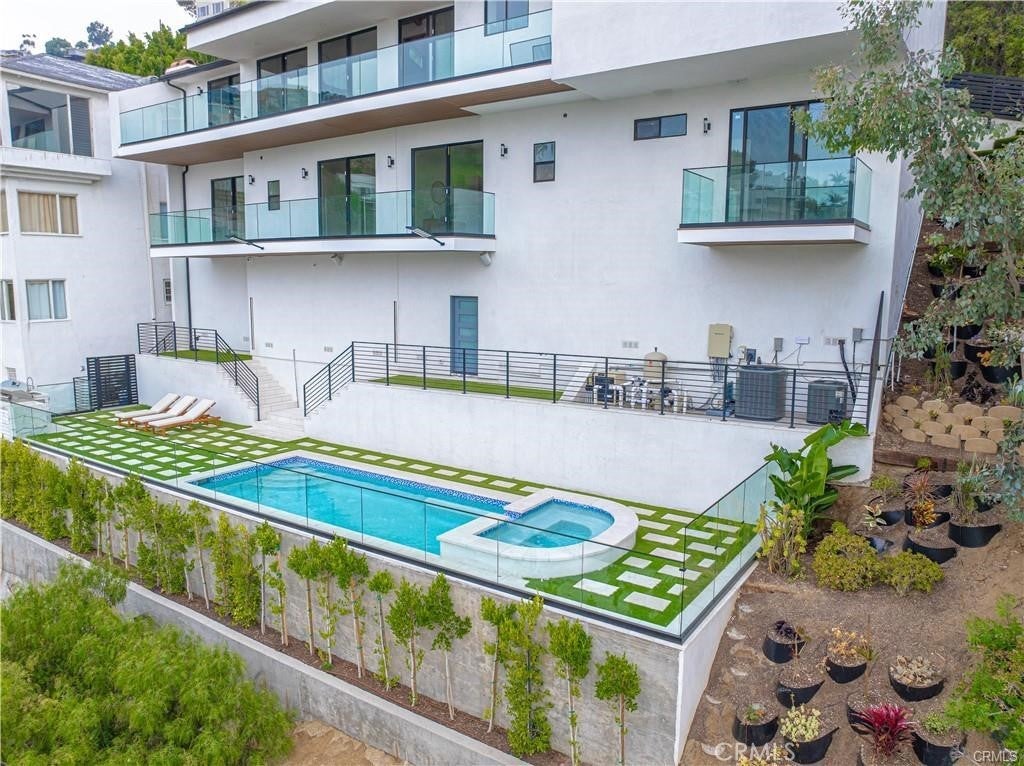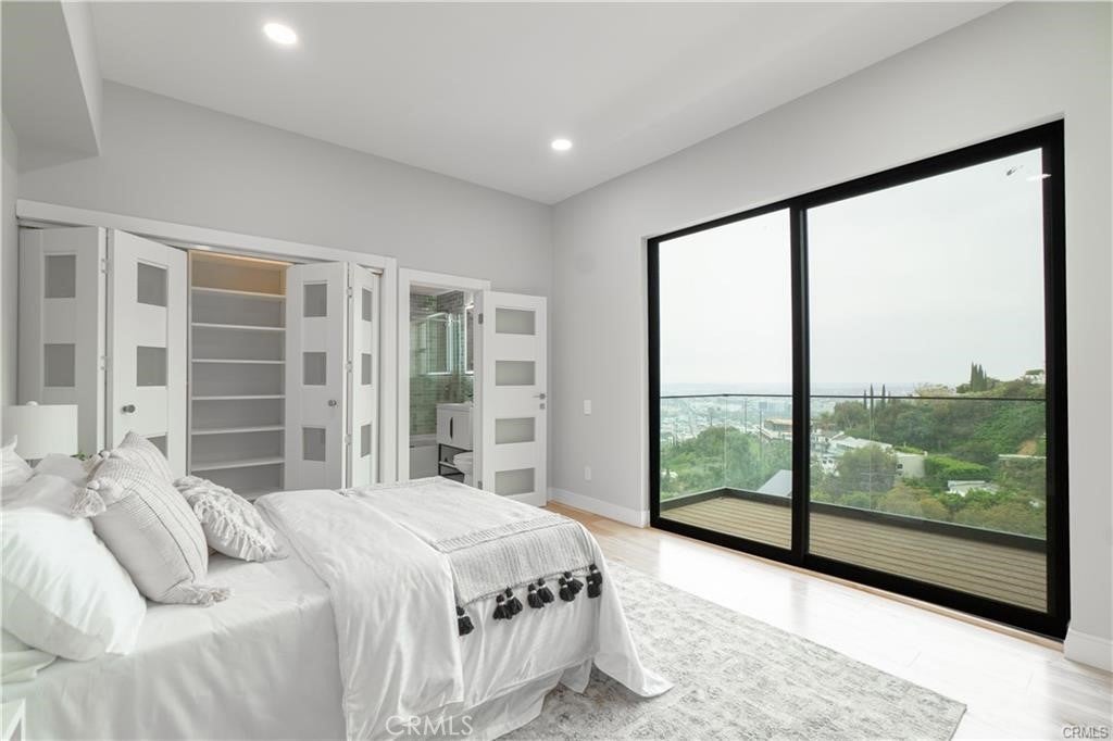 Perched above the legendary Sunset Strip, this 4,266 sq ft modern residence delivers breathtaking ocean views, inspired design, and high-end finishes in one of LA’s most exclusive neighborhoods. This four-level architectural home seamlessly blends modern luxury with smart home innovation, offering the ultimate in elevated indoor-outdoor living. Inside, soaring 21.5-foot ceilings, floating LED-lit stairs, and a solar-powered skylight flood the main living space with natural light and dramatic volume. Hickory Natural hardwood floors run throughout, while oversized porcelain slabs accent three floor-to-ceiling fireplaces, the chef’s kitchen backsplash, island, master bath walls, loft counter, and outdoor BBQ area. Enjoy sweeping ocean views from five of six bedrooms, the family room, chef’s kitchen, rooftop deck, and even the heated saltwater pool. The luxurious primary suite features vaulted ceilings, a fireplace, dual walk-in closets, and dual spa-style baths for a true retreat experience. The lower level hosts four private en-suite bedrooms, each with sliding glass doors opening to expansive rear-facing decks with dramatic southern views—ideal for guests, teens, or multigenerational living. A true entertainer’s dream, the gourmet kitchen is outfitted with Sub-Zero and Wolf appliances, an oversized island, and generous cabinet space. The home is built to entertain—featuring a rooftop deck, theatre, loft, and an outdoor kitchen with built-in BBQ and panoramic views. Designed for effortless indoor-outdoor living, eight Fleetwood sliding doors open to limestone-paved exteriors, a heated saltwater pool and spa with LED lighting, solar landscape lighting, and two NEMA 14-50 EV charging outlets. Seven steel-framed mahogany pivot doors—including the main entry and six bedroom entries—add warmth and elegance to the home’s sleek modern aesthetic. Smart home systems control lighting, fireplaces, pool, irrigation, security, theater, and climate—all from your fingertips. A rare opportunity to own a custom-crafted modern home with luxury finishes, iconic views, and seamless indoor-outdoor flow—minutes from the Sunset Strip, yet a world apart.