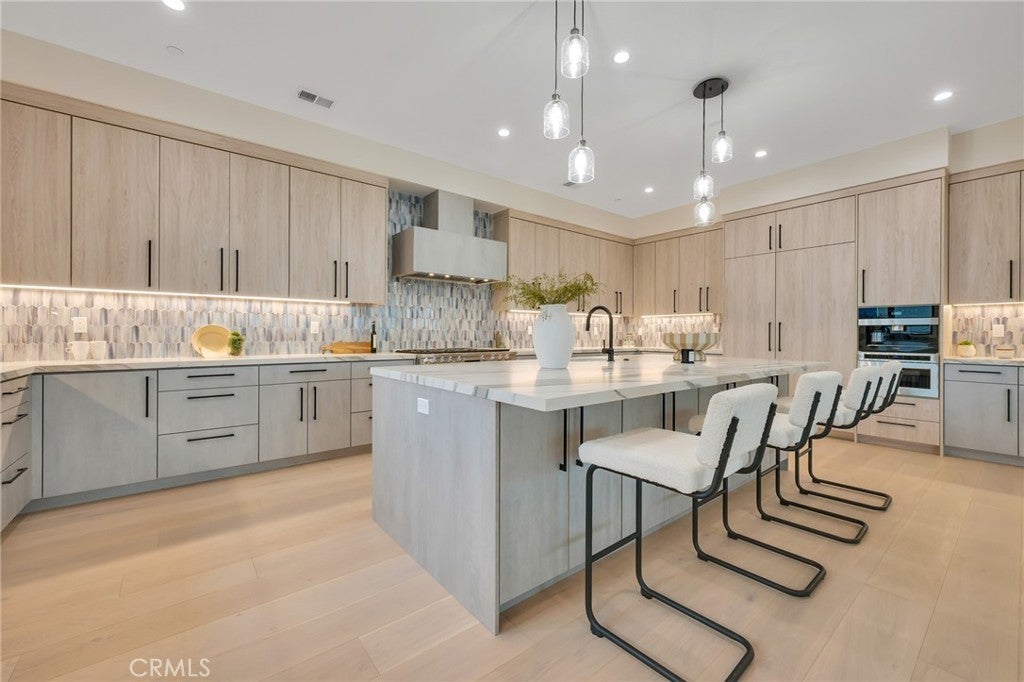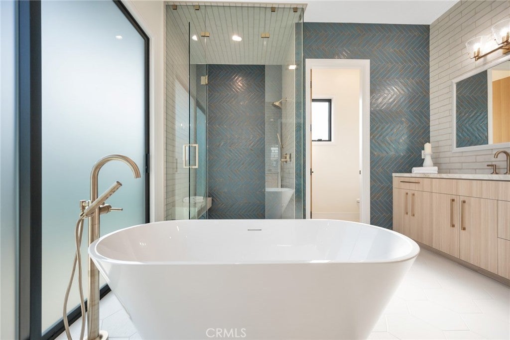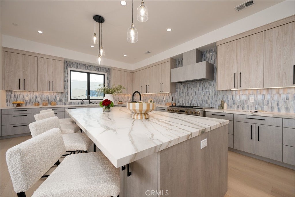 Located in the highly coveted Poet’s Section of Manhattan Beach, this newly built coastal contemporary residence is a stunning blend of architectural elegance and refined design. Created by a distinguished local builder Fasano Enterprise, Inc. This home offers sweeping ocean views and sophisticated indoor-outdoor living. The open-concept layout features 10-foot ceilings, French white oak flooring, natural stone fireplaces, and custom rift oak doors throughout. A 24-foot La Cantina glass wall opens to a 700 sq. ft. terrace with a Hot Tub + Cold Plunge, cedar-lined sauna, built-in ceiling heaters, and integrated speakers—perfect for elevated outdoor enjoyment. The chef’s kitchen is equipped with a 10-foot island, walk-in pantry, and 16-foot wet bar, ideal for culinary creativity and entertaining. A floating staircase with a dramatic 20-foot stone wall leads to the lower level, where four generously sized bedrooms are situated, including a luxurious primary suite with access to a serene garden retreat. The landscaped backyard is framed by a custom pergola and lush greenery, offering a peaceful and private setting. Close proximity to beaches, dining, shopping, and highly regarded schools enhances the appeal of this exceptional home.