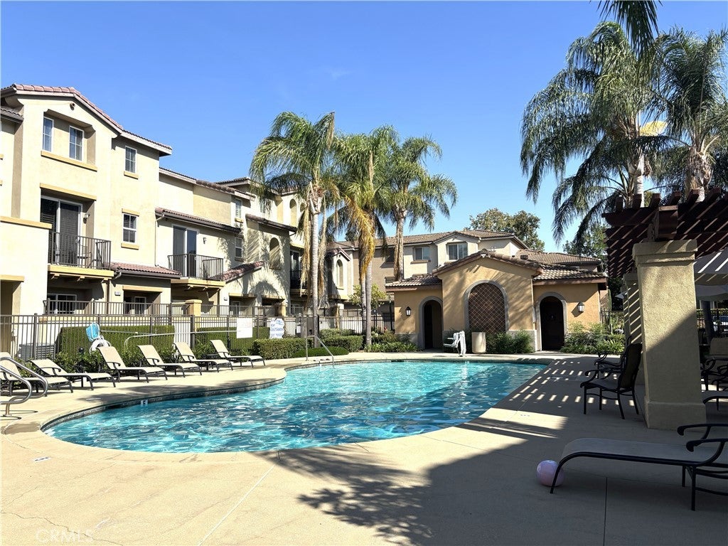 Welcome to your cozy townhome nestled at the highly desirable Celamonte Community in Butterfield Ranch Area, Chino Hills. This well-designed townhome boasts 1,436 sqft of comfortable living space, featuring 2 bedrooms, 2.5 baths. One bedroom with an ensuite bathroom with private patio located on the first floor. You can enjoy a large living room and dining area with two story high ceiling and balcony for entertaining. The luxurious master suite furnishes a spacious walk-in closet and dual sinks in the ensuite bathroom. The open floor plan offers many clear views that highlight the spaciousness of the unit. The current owner installed tankless water heater, a new garage opener, Tesla home charger, new kitchen appliances – range, dish washer, and microwave. The community offers elegant resort style amenities with pool, spa, outdoor fireplace, and children playground. It will be a great opportunity to live close to Prado Regional Park, famous for outdoor recreation and adventure offerings. And it is located in Chino Valley Unified School District and a very convenient location for major FWY 71 & 91. HOA dues include water, sewer, trash, ground maintenance, and fire insurance. This beautiful unit is ready for you to move in. Don’t let this opportunity pass you by.