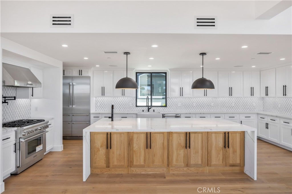 Nestled on one of the most coveted blocks west of Prospect, this exceptional three-storey residence offers a harmonious blend of modern luxury and coastal charm. Perched above the Pacific, it invites you to bask in sweeping water views and the gentle sea breeze. Ascend to the private rooftop deck, where the horizon unfolds in a tapestry of ocean and sky. Whether savouring a tranquil sunset or hosting intimate gatherings, this elevated perch offers a serene escape above the city’s rhythm. The gourmet kitchen stands as the heart of the home, featuring a grand island, six-burner stove, and Energy Star-qualified appliances. Quartz countertops grace both kitchen and bathrooms, marrying elegance with practicality. A spacious walk-in pantry ensures that every culinary need is met with ease. An airy, open floor plan seamlessly connects the living, dining, and kitchen areas, fostering a sense of flow and togetherness. Natural light pours through expansive windows, illuminating the space and highlighting the home's thoughtful design. A thoughtfully designed laundry room enhances daily convenience, completing the home’s commitment to comfort and style. Combining comfort, style, and energy efficiency, this home is perfect for those seeking a truly exceptional living experience in one of Southern California's most desirable locales.