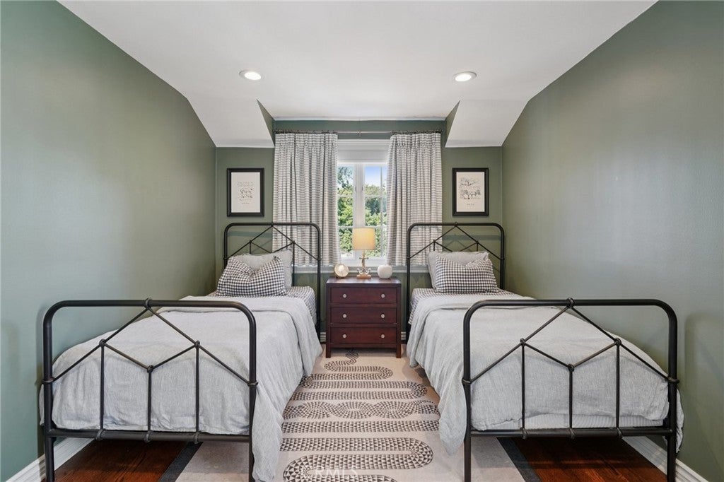 Welcome to one of Valmonte’s most coveted addresses at 3321 Via La Selva. Nestled on a spacious flat lot with mature landscaping, the home showcases picturesque curb appeal. Once inside, the home combines timeless character with modern touches, with bespoke designer updates completed in 2021. The layout is designed for refined comfort and flexibility, offering three bedrooms upstairs and one on the main level. The large primary suite is a sanctuary featuring multiple closets, beam accented ceilings, custom built-in cabinetry, and a private balcony overlooking the serene backyard. Living spaces have gorgeous touches, with the kitchen opening up to the dining room and further to the generous living room, anchored by a wood-burning fireplace. The inviting family room is adjacent to a second eating nook, with access to the brick rear patio and backyard. A special bonus, the permitted flex space flanks the garage- with vaulted ceilings and direct access to the yard, the options are limitless for this retreat! Additional highlights include an upstairs laundry room, a large storage closet (and attic space) in the garage, along with an electronic driveway gate for privacy. The backyard offers plenty of usable space with room for a pool, space for gatherings, complete with a cozy fire pit and direct access to the adjacent bridal trail. With its prime Valmonte location, designer details, and exceptional lot, this property delivers the window to a lifestyle we all aspire to.