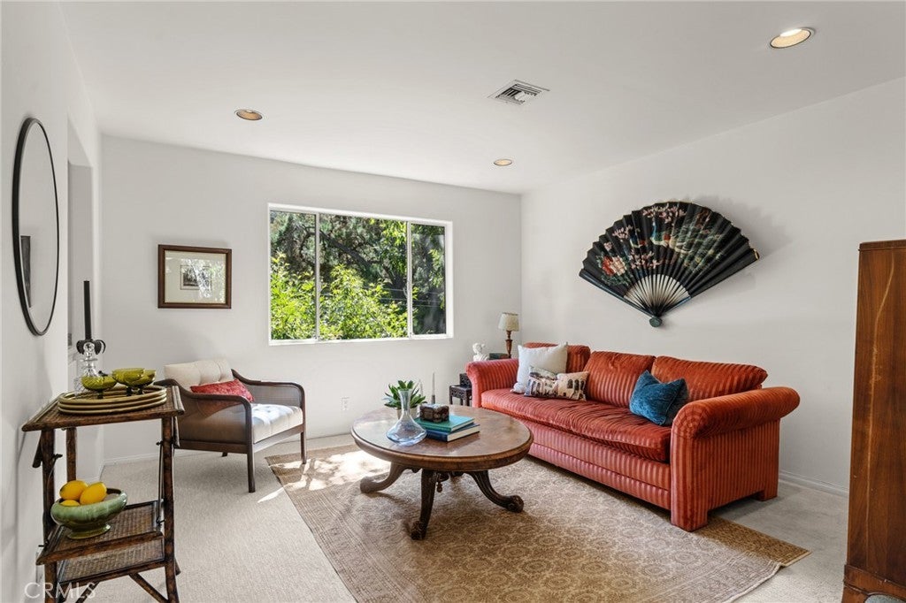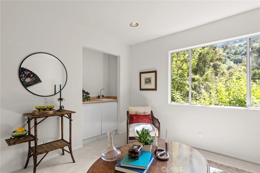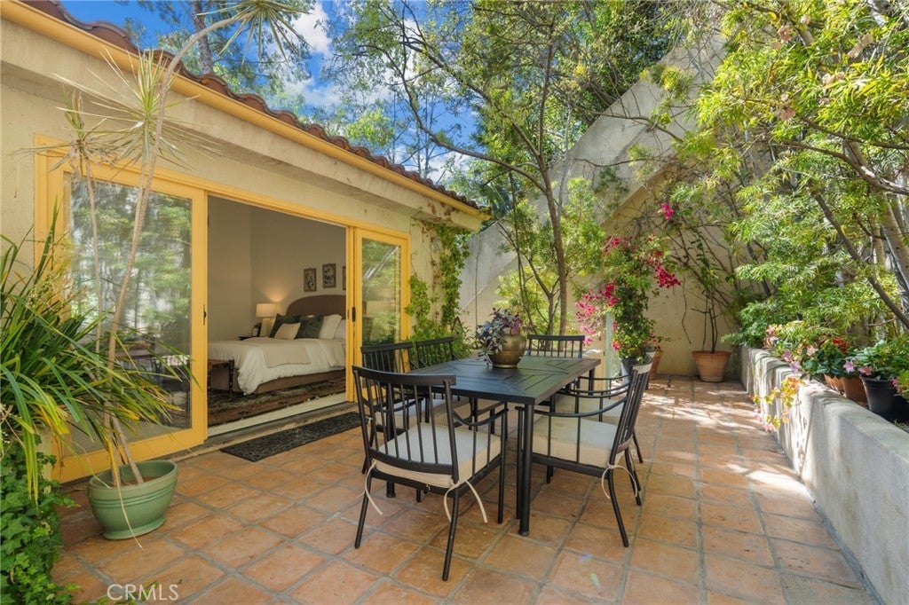 You simply must experience 10055 Reevesbury Drive, a 3 Bed, 3 Bath masterpiece of European charm and contemporary elegance - the perfect retreat for creatives and visionaries alike. The journey begins in a marble-floored entry, leading to a versatile flex space (bedroom, office, art studio), bathed in natural light, a full bath and direct access to the spacious two-car garage. The main level invites grand scale living; a great room with expansive west-facing windows framing lush hillside views, a working wood-burning fireplace and an open chef’s kitchen, ideal for entertaining while prepping meals. On this floor, a generous 2nd bedroom with full bath and private courtyard offers a peaceful nook for reflection. But it's the top level where the heart of this creative retreat unfolds in a primary suite with soaring ceilings, gas burning fireplace, separate sitting room, and over 1,000/sf of luxurious comfort. Step onto a private terra cotta terrace, surrounded by shade trees and vibrant landscaping. Delight in the spa-inspired marble bathroom with jetted tub, glass-enclosed shower, and two walk in closets. Located on a tranquil street, nature enthusiasts will delight in year-round greenery and lively birdsong that enchants morning and evening strolls. For families with children, the home enrolls to Warner Elementary or tap into the Beverly Hills School system. And being just 3 miles north of Sunset, you are moments from world-class dining, shopping and nightlife options. The next owner will want it all, canyon stillness and city energy. Discover all that and more at the Canyon Chateau where every detail has been designed to inspire your daily life.
